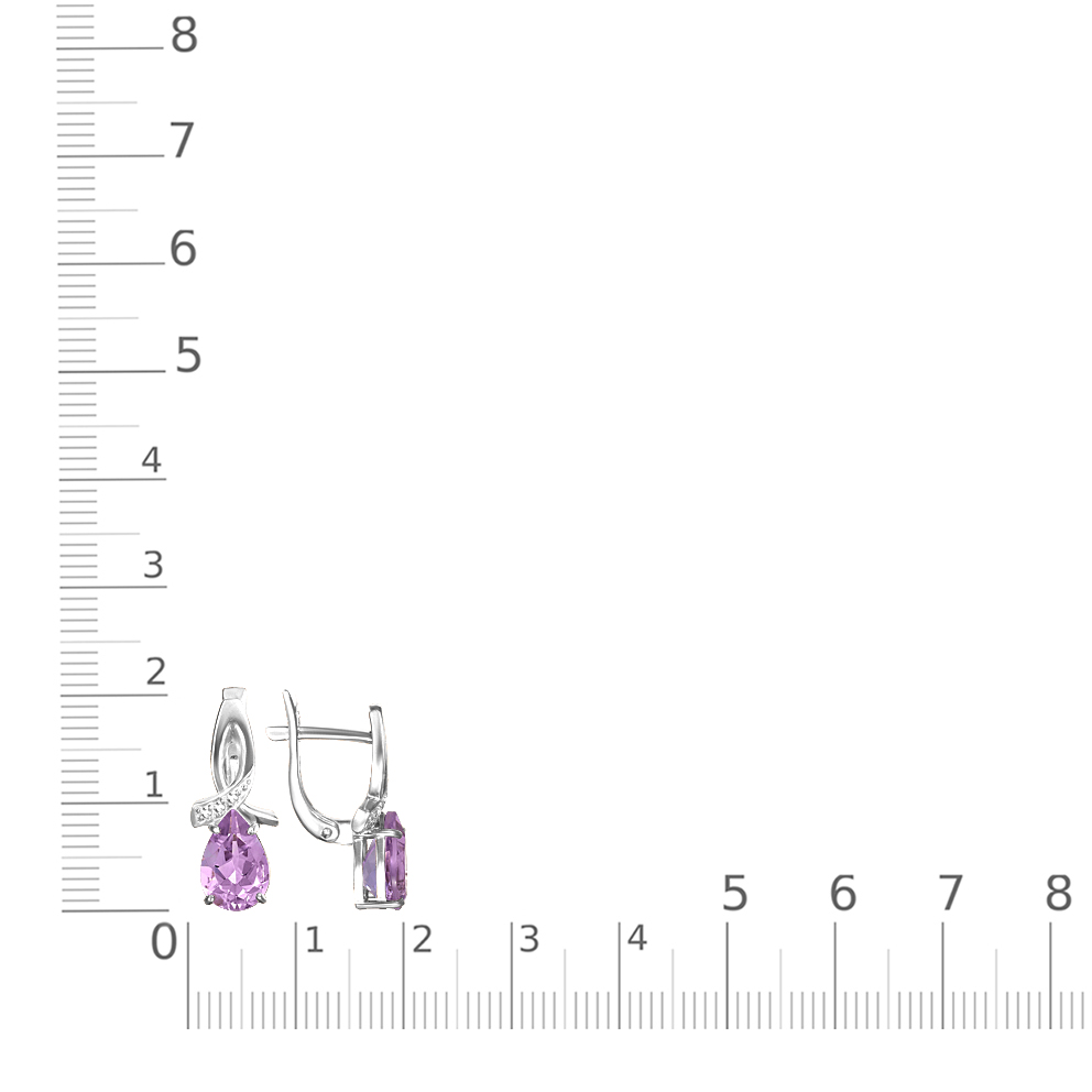 Аметист натуральный, количество 2 шт., огранка груша, размер 9ˣ6 ; Фианит б/цв, количество 6 шт., огранка круг, размер 1,25 мм