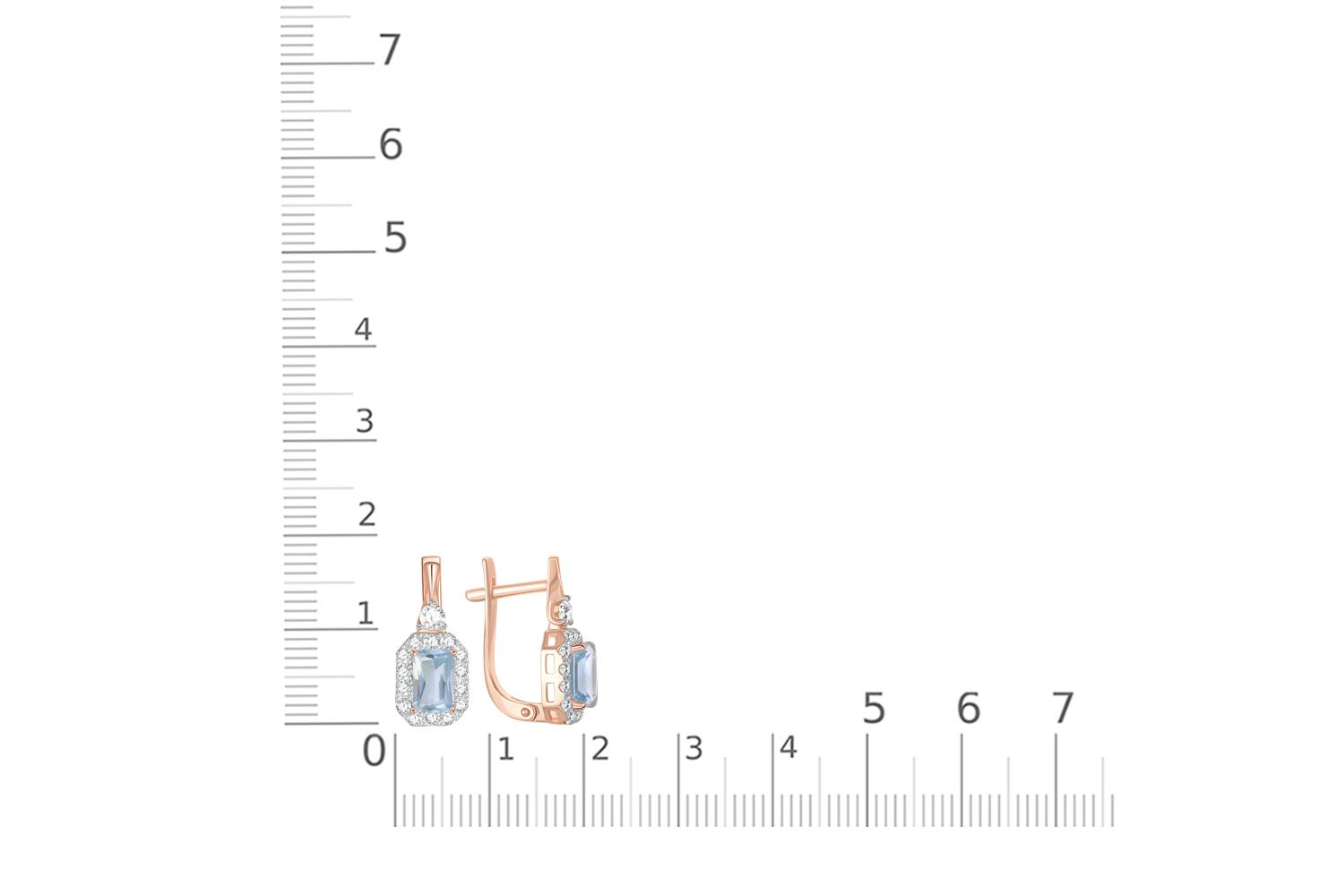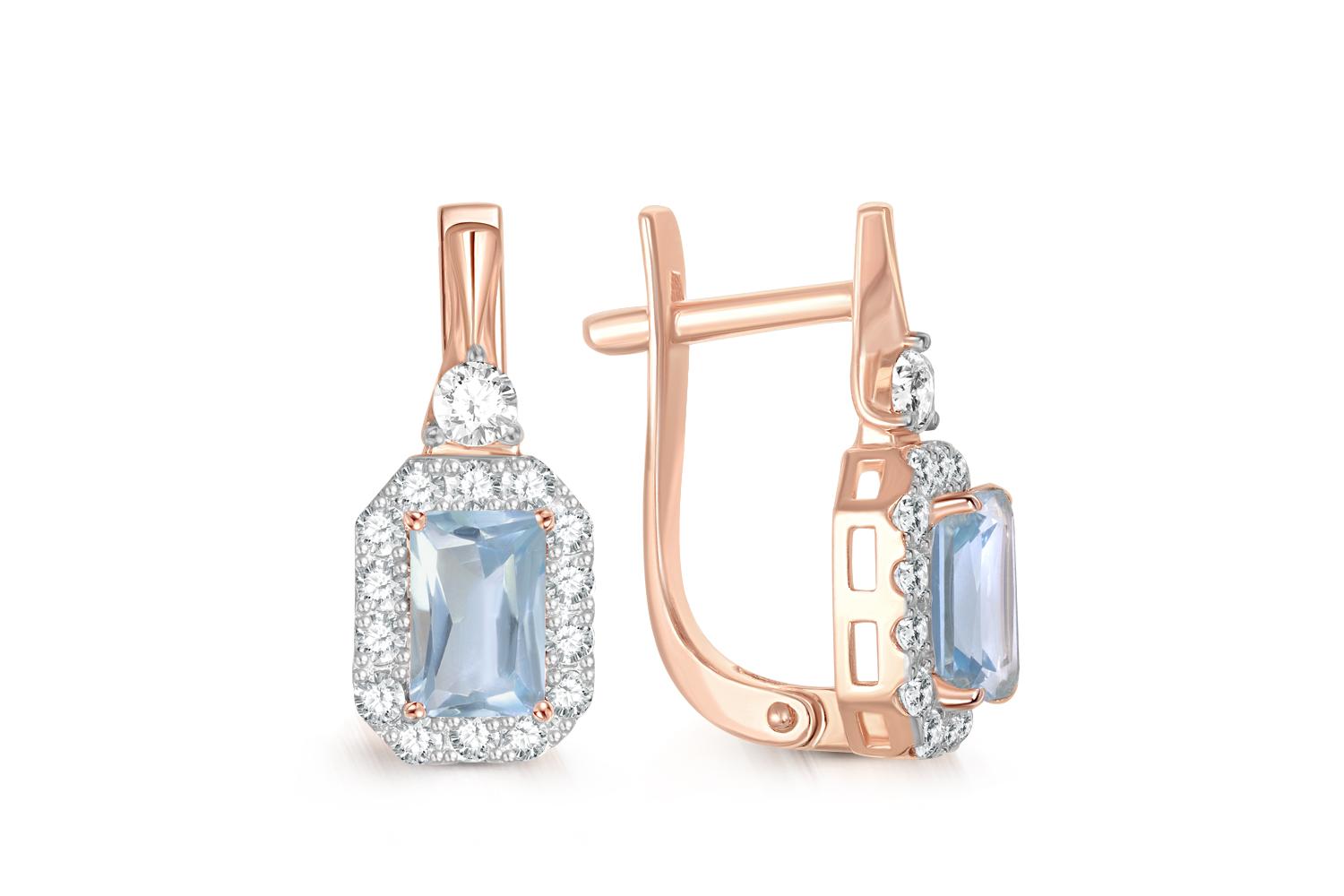 Мастера компании NEWGOLD, приложив всё свое мастерство и искусство, создали для Вас на нашем собственном производстве Серьги из красного золота с 2 топазами sky и 30 фианитами.