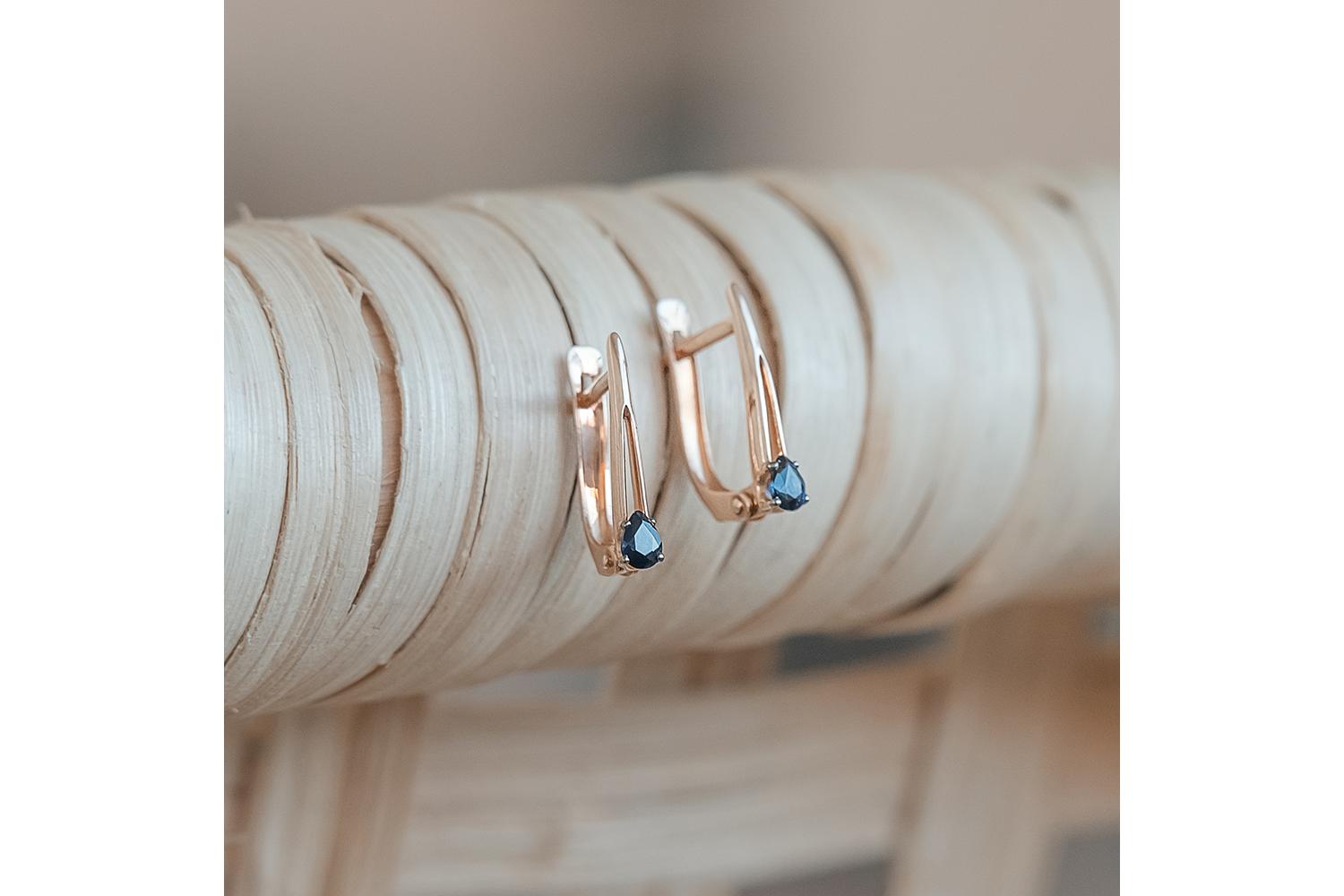 Мастера компании NEWGOLD, приложив всё свое мастерство и искусство, создали для Вас на нашем собственном производстве Серьги из красного золота с 2 сапфирами.