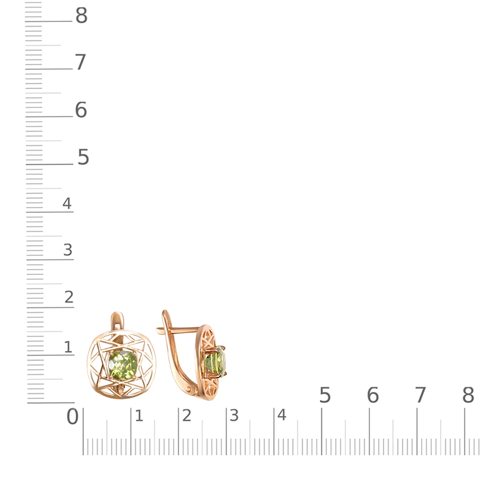 Мастера компании NEWGOLD, приложив всё свое мастерство и искусство, создали для Вас на нашем собственном производстве Серьги Квадраты из красного золота с 2 хризолитами.