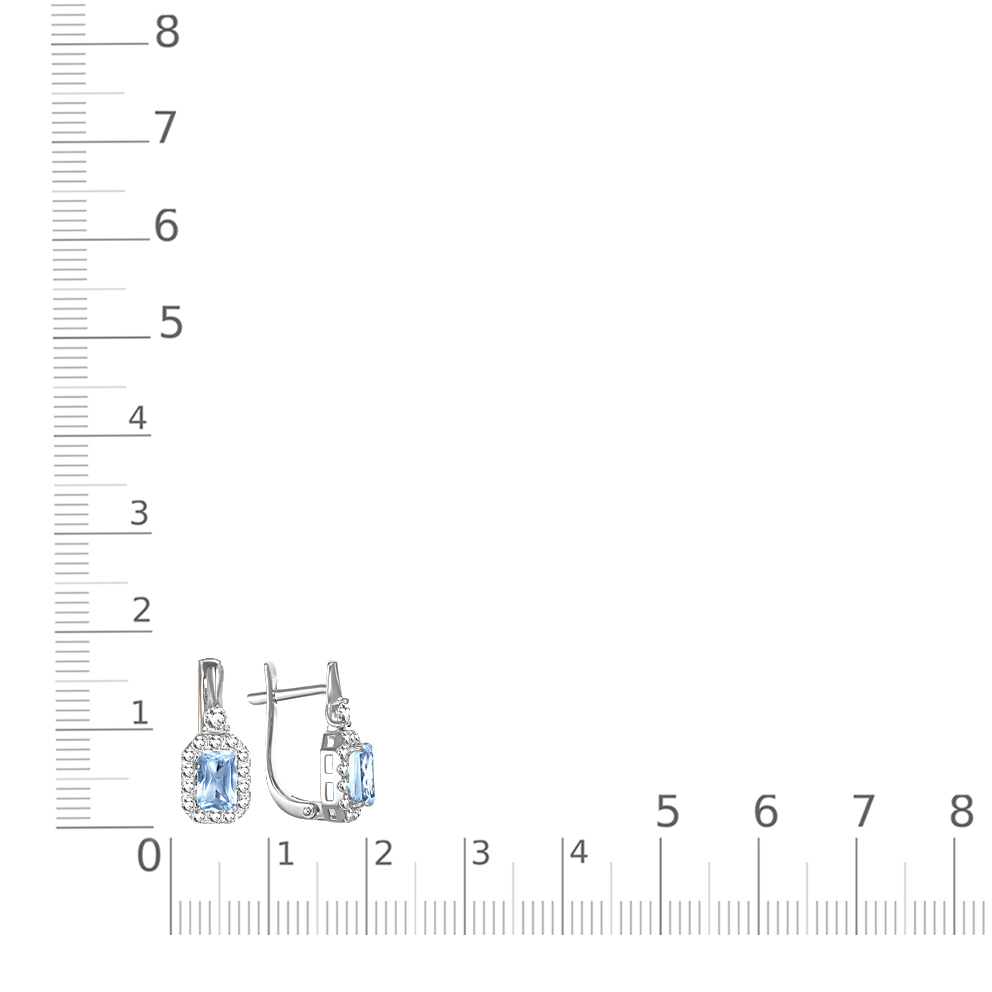 Мастера компании NEWGOLD, приложив всё свое мастерство и искусство, создали для Вас на нашем собственном производстве Серьги из белого золота с 2 топазами sky и 30 фианитами.