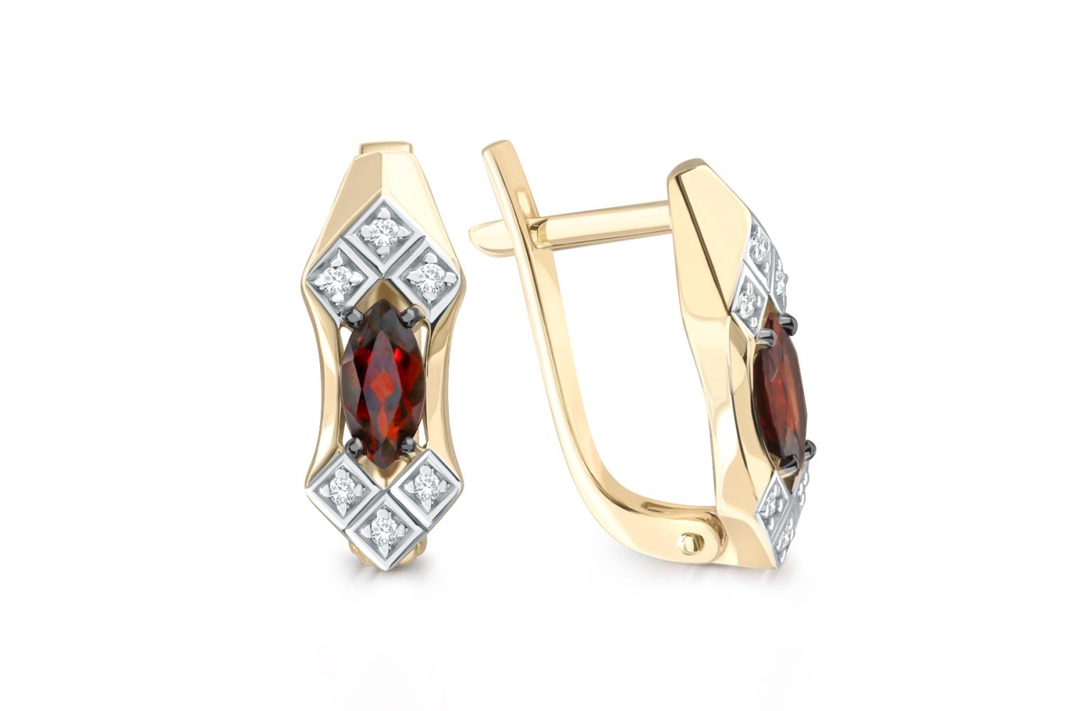 Мастера компании NEWGOLD, приложив всё свое мастерство и искусство, создали для Вас на нашем собственном производстве Серьги из жёлтого золота с 2 гранатами и 12 фианитами.
