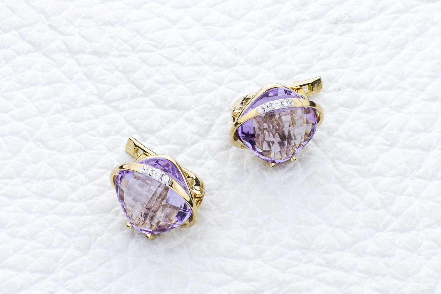 Мастера компании NEWGOLD, приложив всё свое мастерство и искусство, создали для Вас на нашем собственном производстве Серьги из жёлтого золота с 8 аметистами.