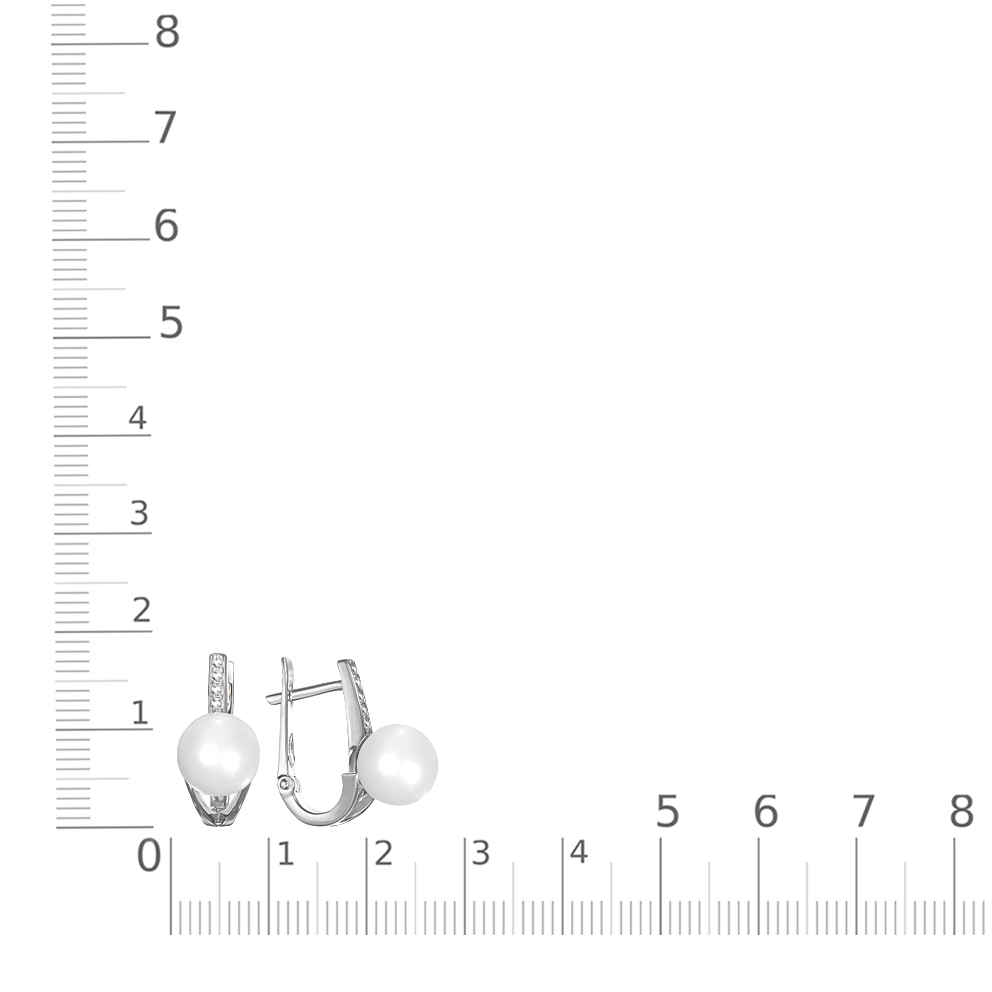 Жемчуг белый натуральный, количество 2 шт., огранка круг, размер 8ˣ8,5 ; Бриллиант, количество 10 шт., огранка Кр-57, размер 1,25 мм, цвет 4, чистота 5