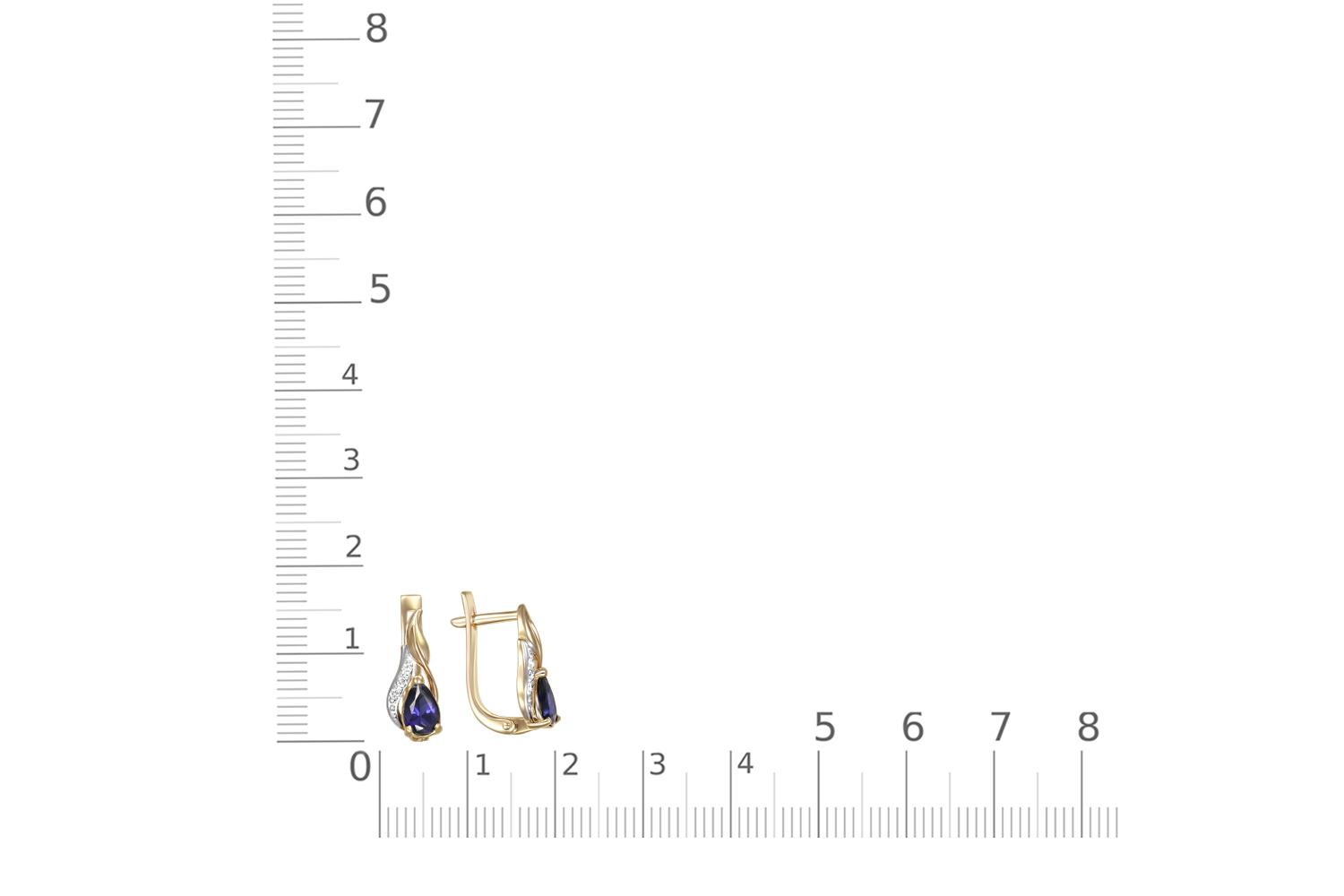 Сапфир натуральный, количество 2 шт., огранка груша, размер 6ˣ4, цвет 2, чистота 2 ; Бриллиант, количество 6 шт., огранка Кр-17, размер 1,25 мм, цвет 2, чистота 2