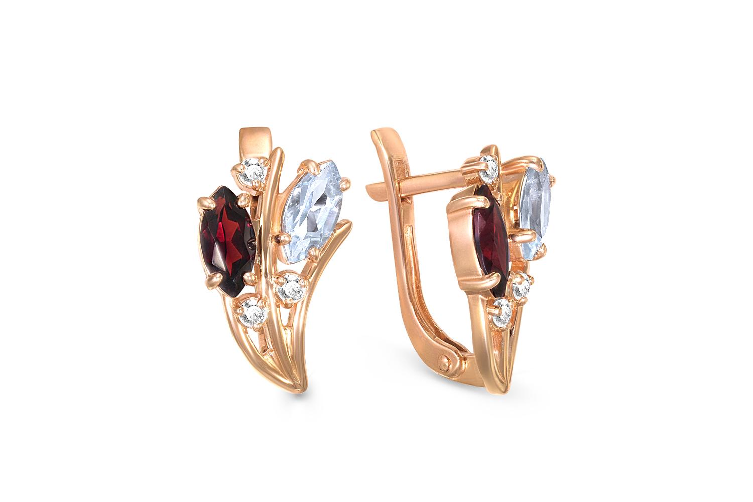 Мастера компании NEWGOLD, приложив всё свое мастерство и искусство, создали для Вас на нашем собственном производстве Серьги Цветы из красного золота с 4 гранатами и 6 фианитами.