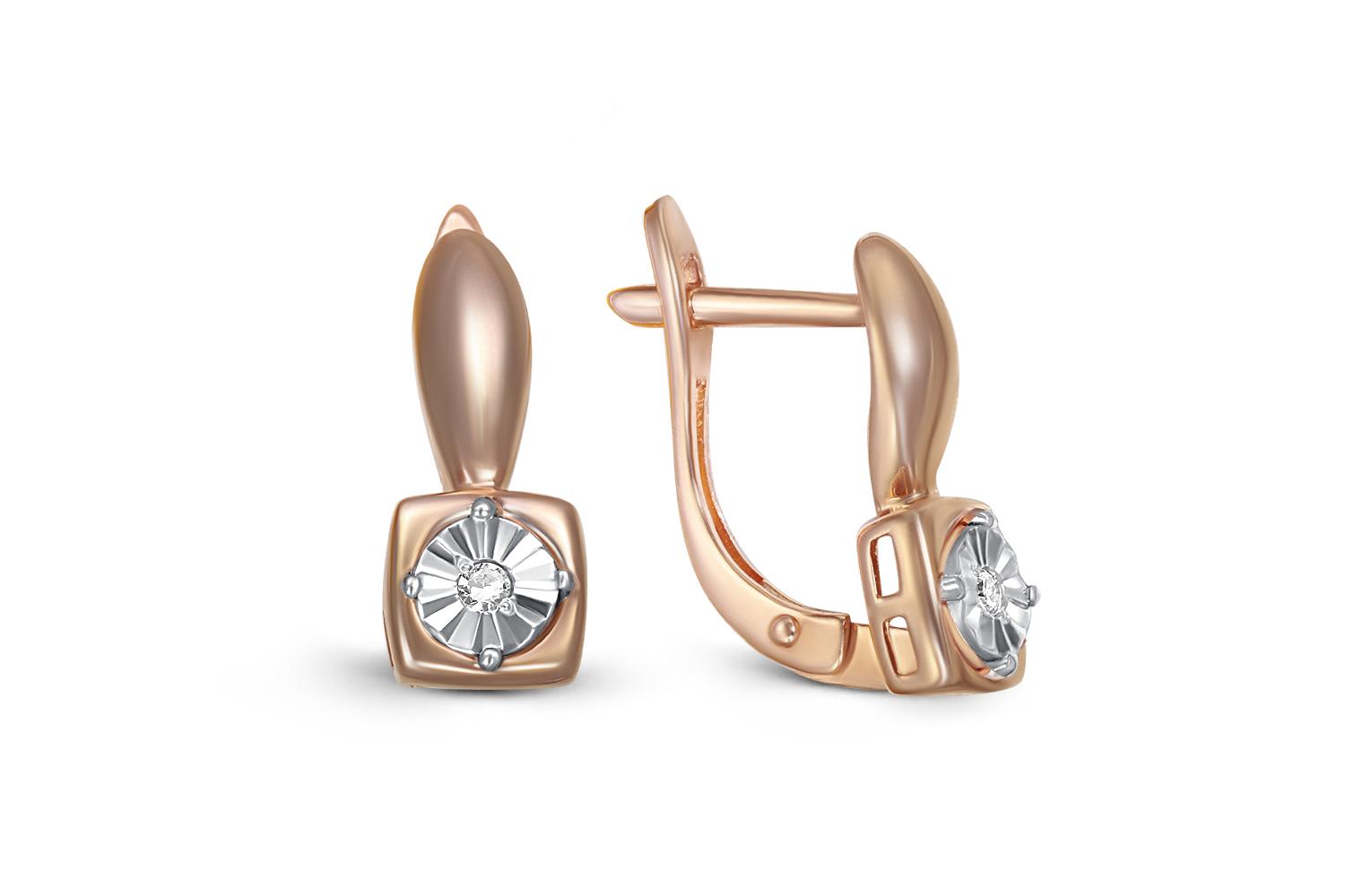 Мастера компании NEWGOLD, приложив всё свое мастерство и искусство, создали для Вас на нашем собственном производстве Серьги Квадраты из красного золота с 2 бриллиантами.