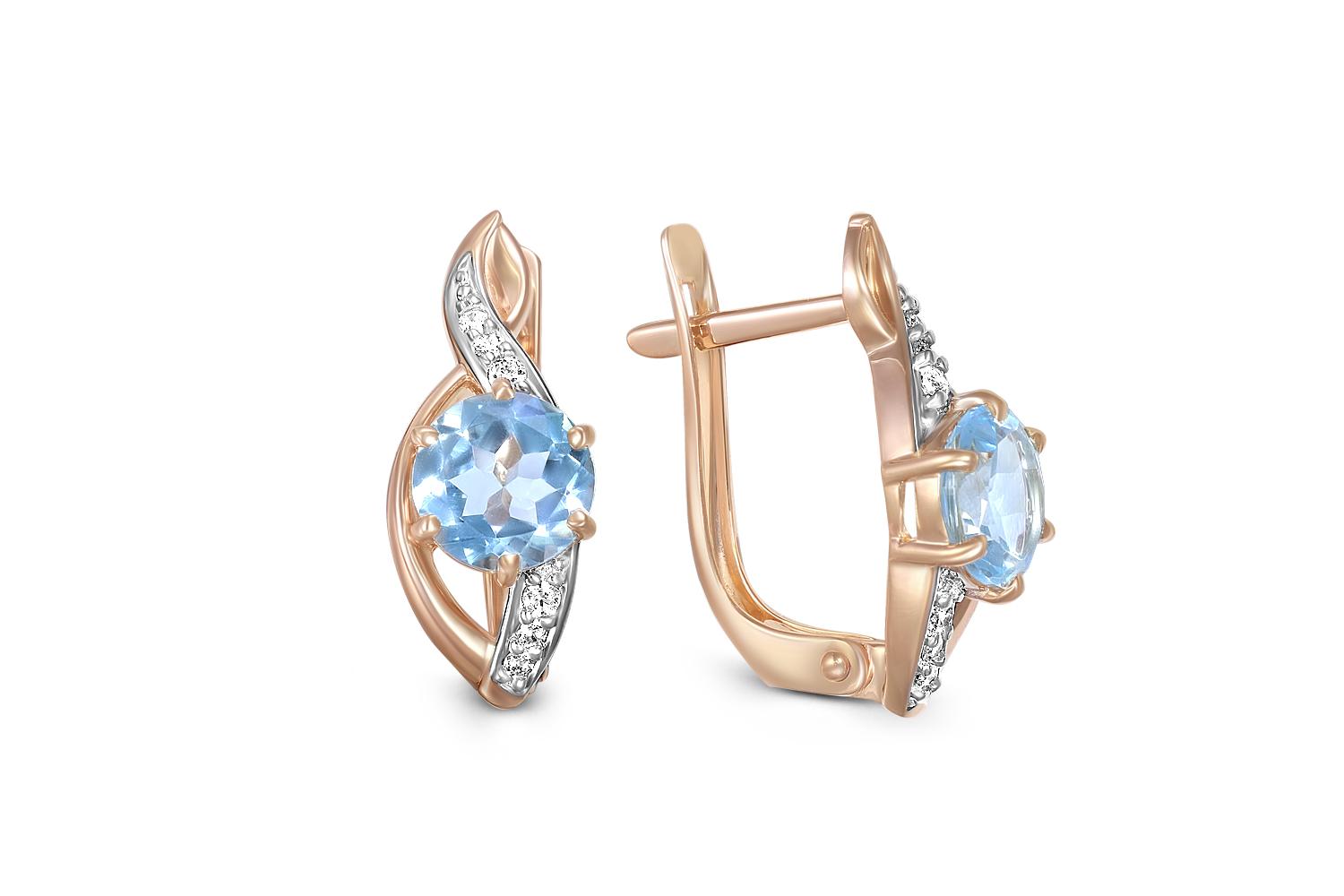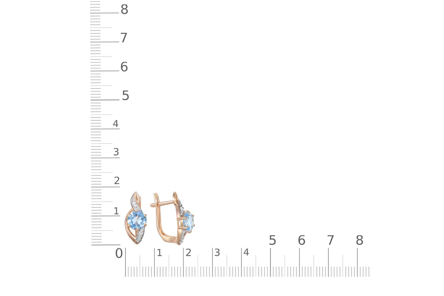 Мастера компании NEWGOLD, приложив всё свое мастерство и искусство, создали для Вас на нашем собственном производстве Серьги из красного золота с 2 топазами sky и 12 фианитами.
