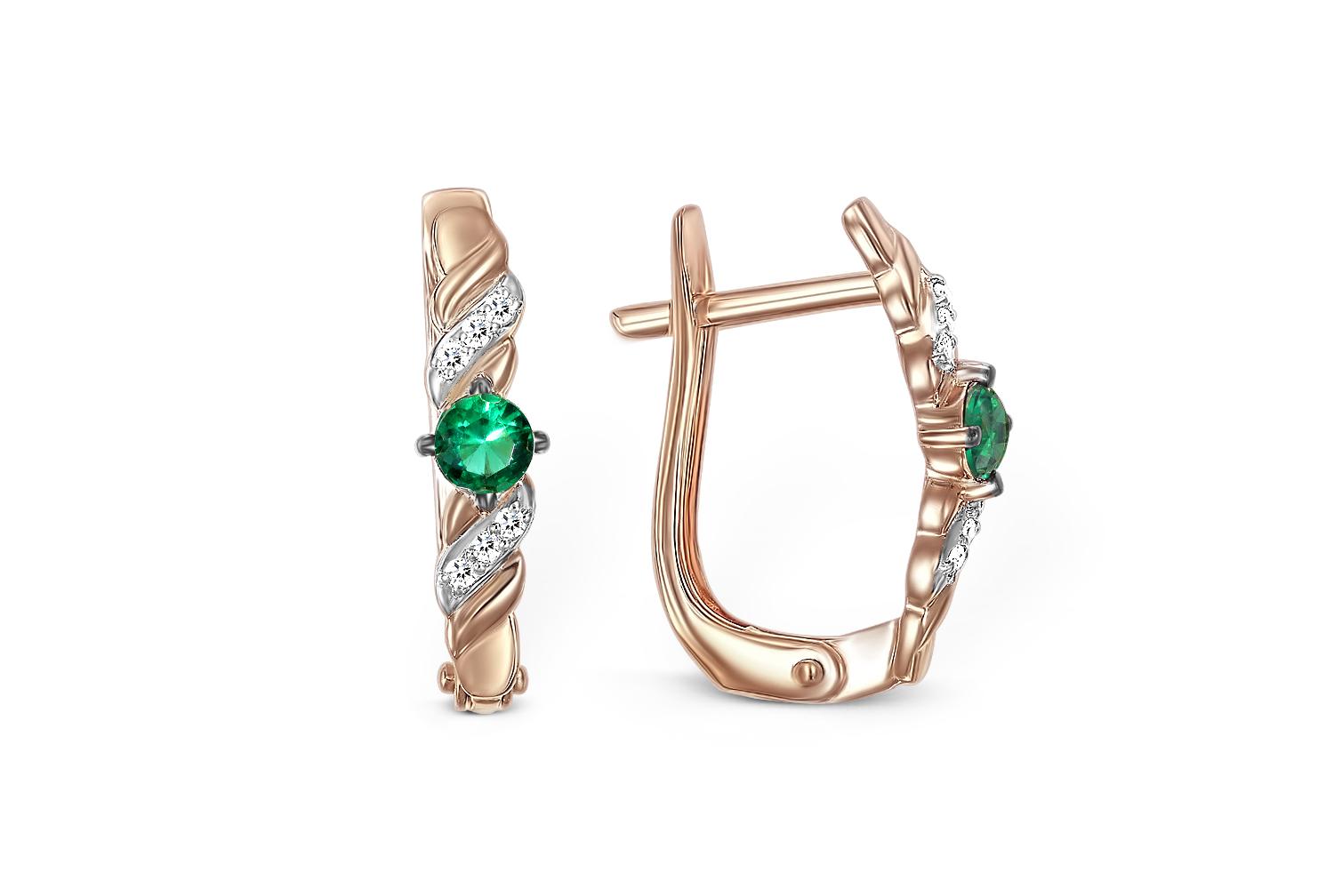 Закажите Серьги из красного золота с 2 изумрудами и 12 бриллиантами с получением в Москве через курьерскую службу доставки напрямую с нашего производственного склада завода NEWGOLD!