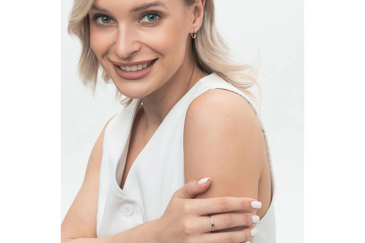 Модель современная и подойдет как для повседневной носки, так и для праздничных мероприятий. Сверкающая дорожка с бриллиантами привносит блеск и придает сережкам дополнительное очарование. Камень зелёного ттенка создает особенный шарм и выделяет уникальный стиль обладательницы.