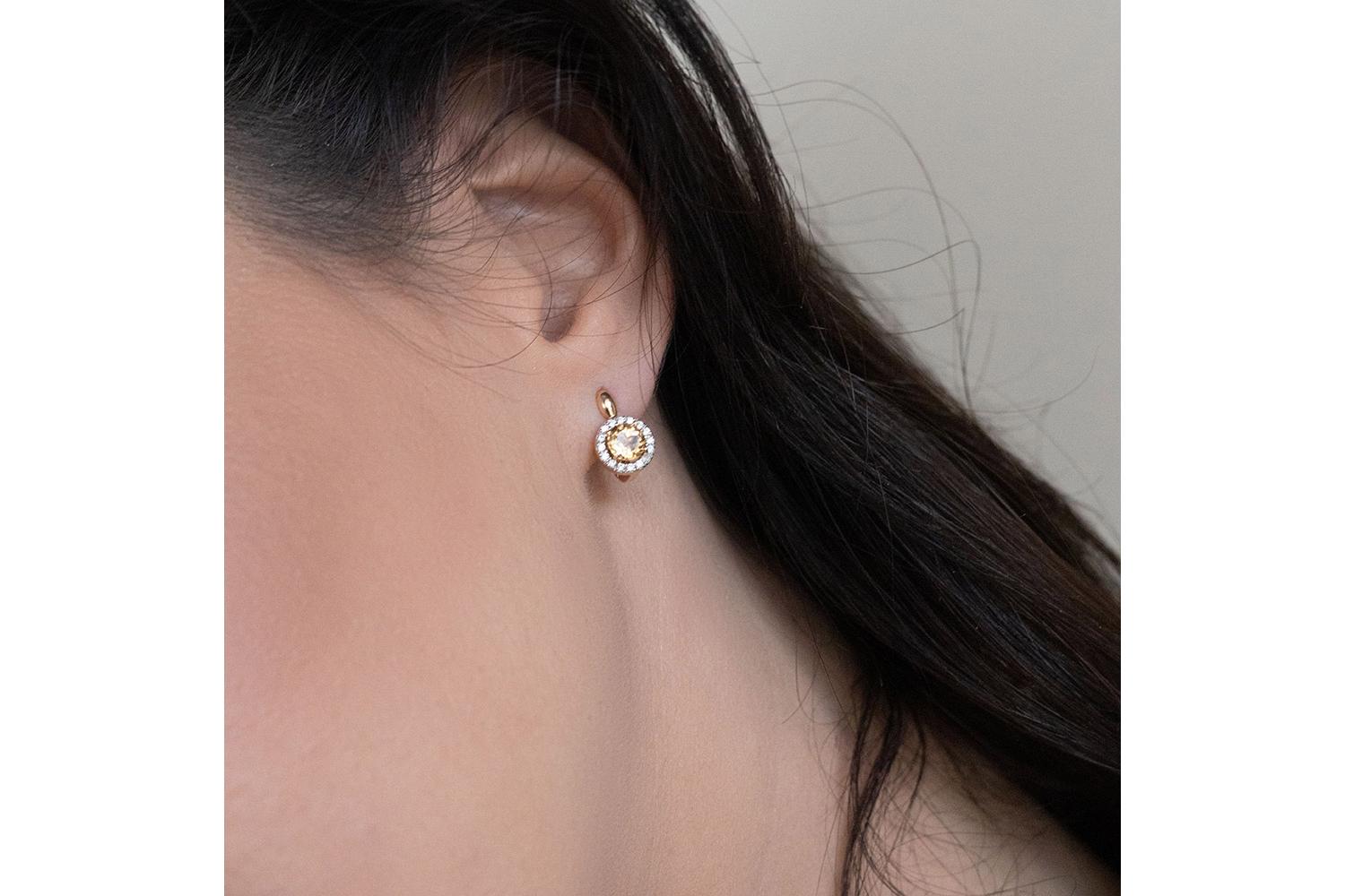 Закажите Серьги из красного золота с 2 цитринами и 32 фианитами с получением в Москве через курьерскую службу доставки напрямую с нашего производственного склада завода NEWGOLD!