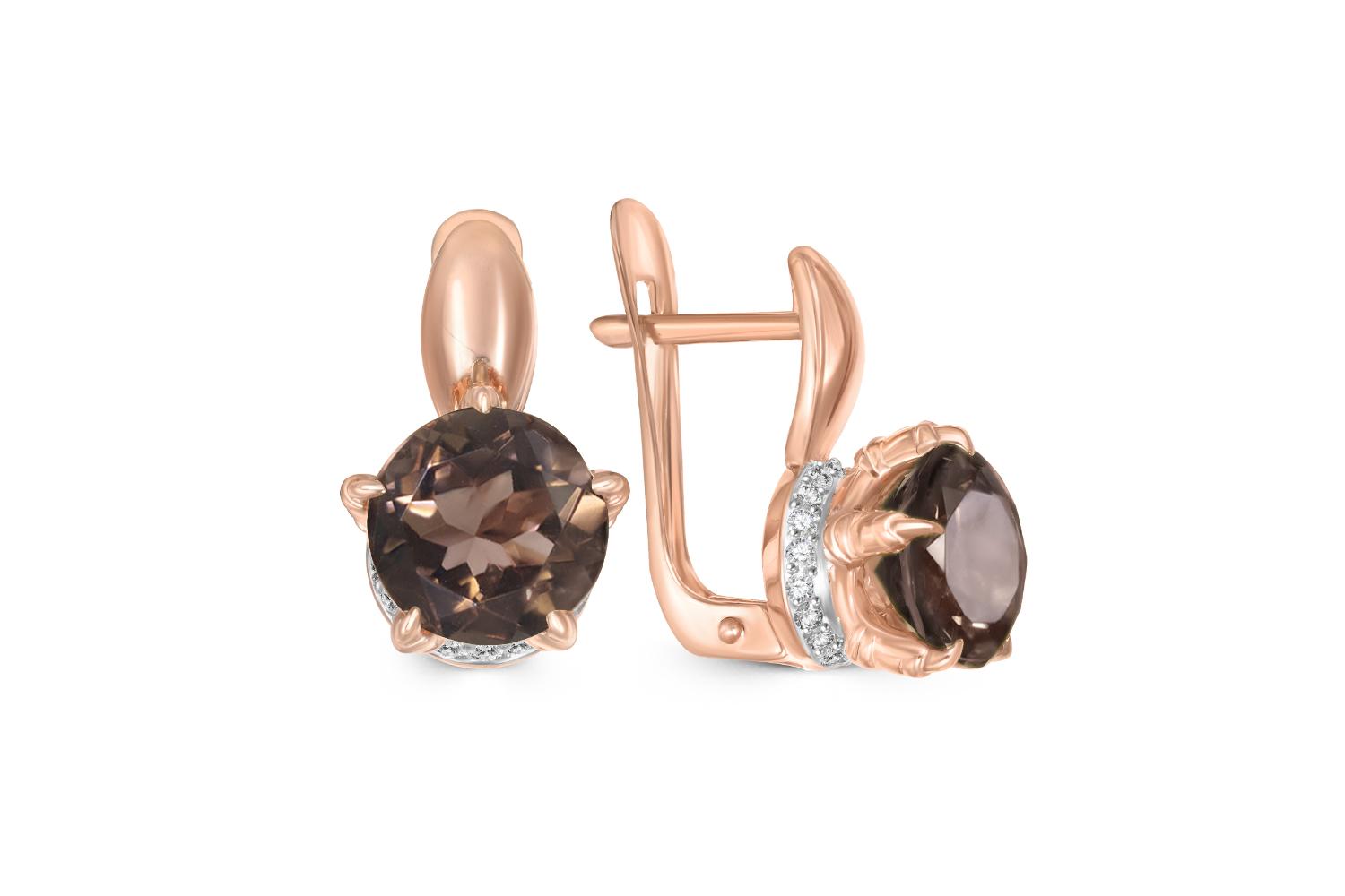 Мастера компании NEWGOLD, приложив всё свое мастерство и искусство, создали для Вас на нашем собственном производстве Серьги из красного золота с 2 раухтопазами и 36 фианитами.