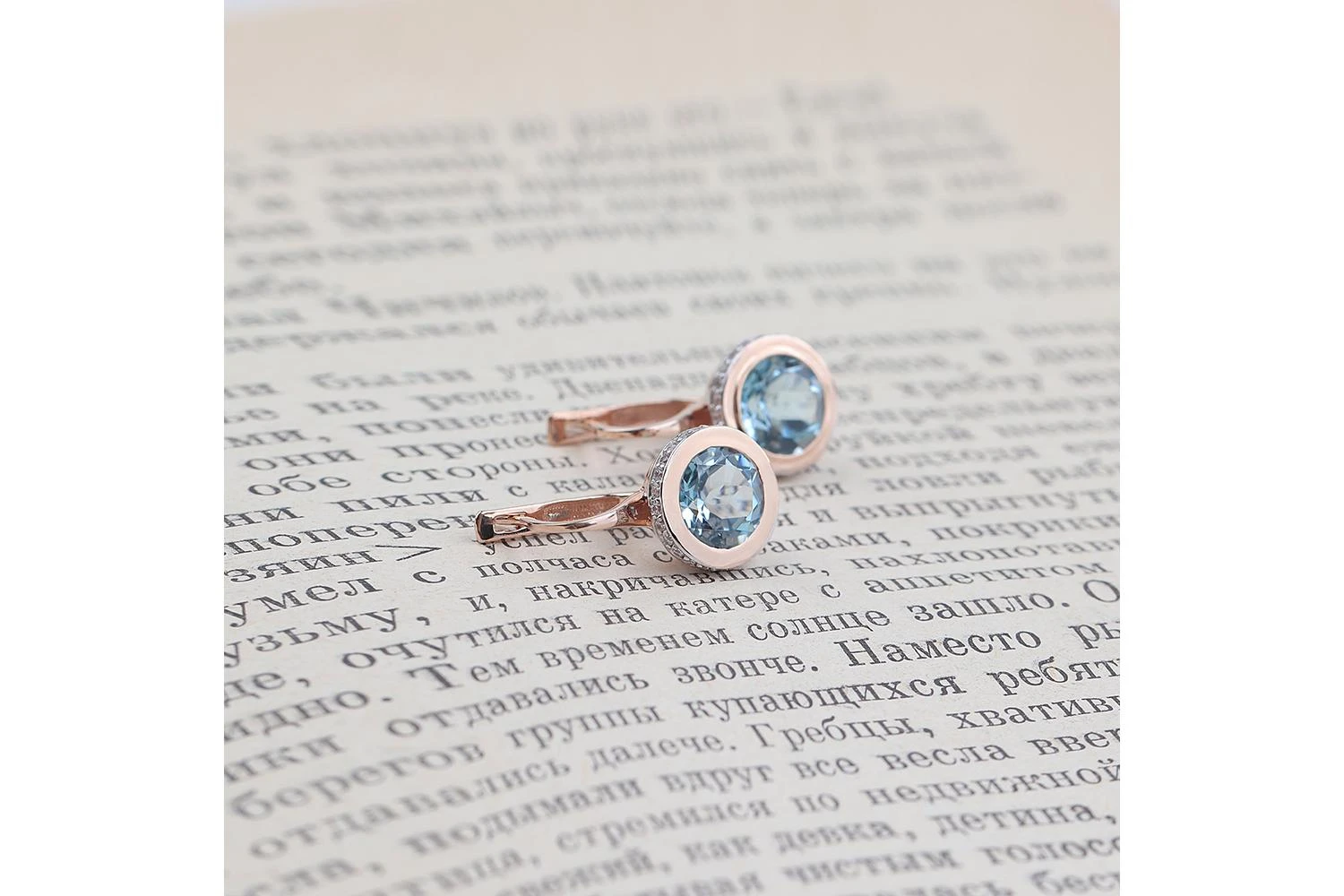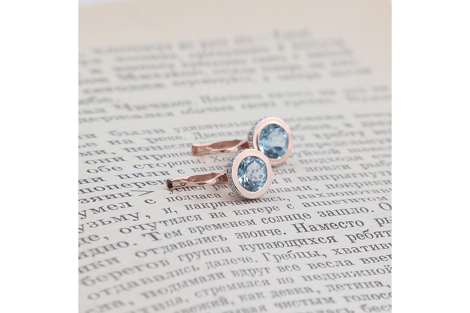 Мастера компании NEWGOLD, приложив всё свое мастерство и искусство, создали для Вас на нашем собственном производстве Серьги из красного золота с 2 топазами sky и 52 фианитами.