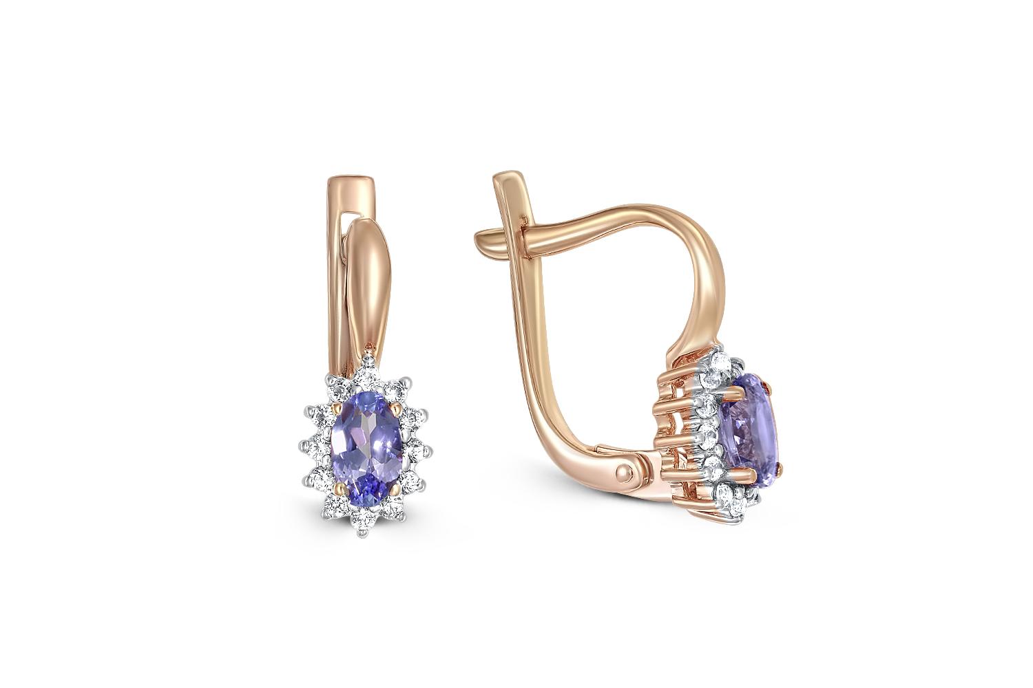 Мастера компании NEWGOLD, приложив всё свое мастерство и искусство, создали для Вас на нашем собственном производстве Серьги из красного золота с 2 танзанитами и 24 фианитами.