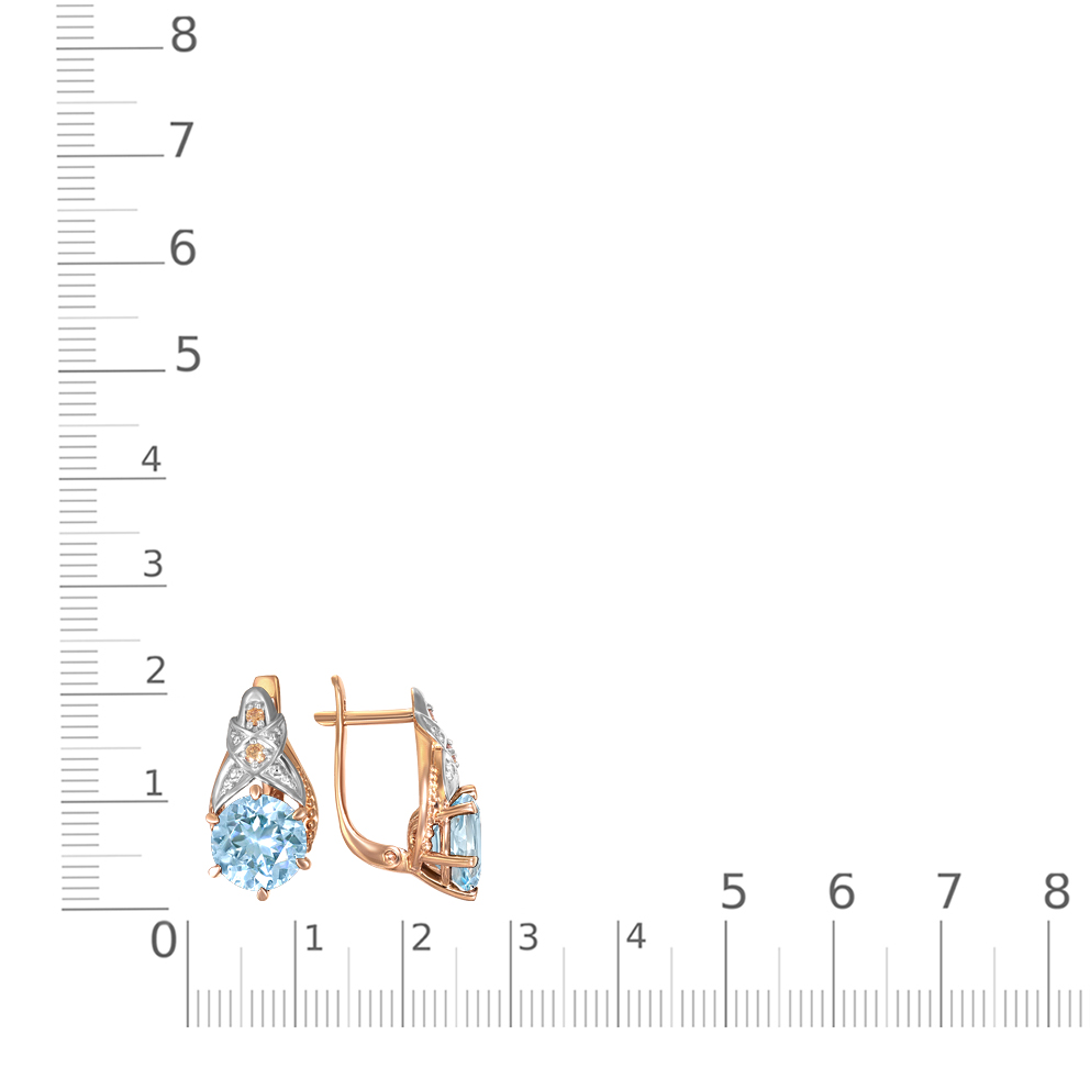 Мастера компании NEWGOLD, приложив всё свое мастерство и искусство, создали для Вас на нашем собственном производстве Серьги из красного золота с 2 топазами sky и 4 фианитами.