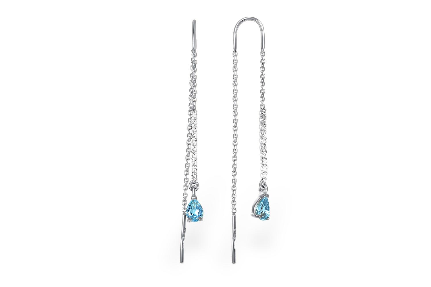 Мастера компании NEWGOLD, приложив всё свое мастерство и искусство, создали для Вас на нашем собственном производстве Серьги-продёвки Дорожки из белого золота с 2 топазами swiss и 20 фианитами.