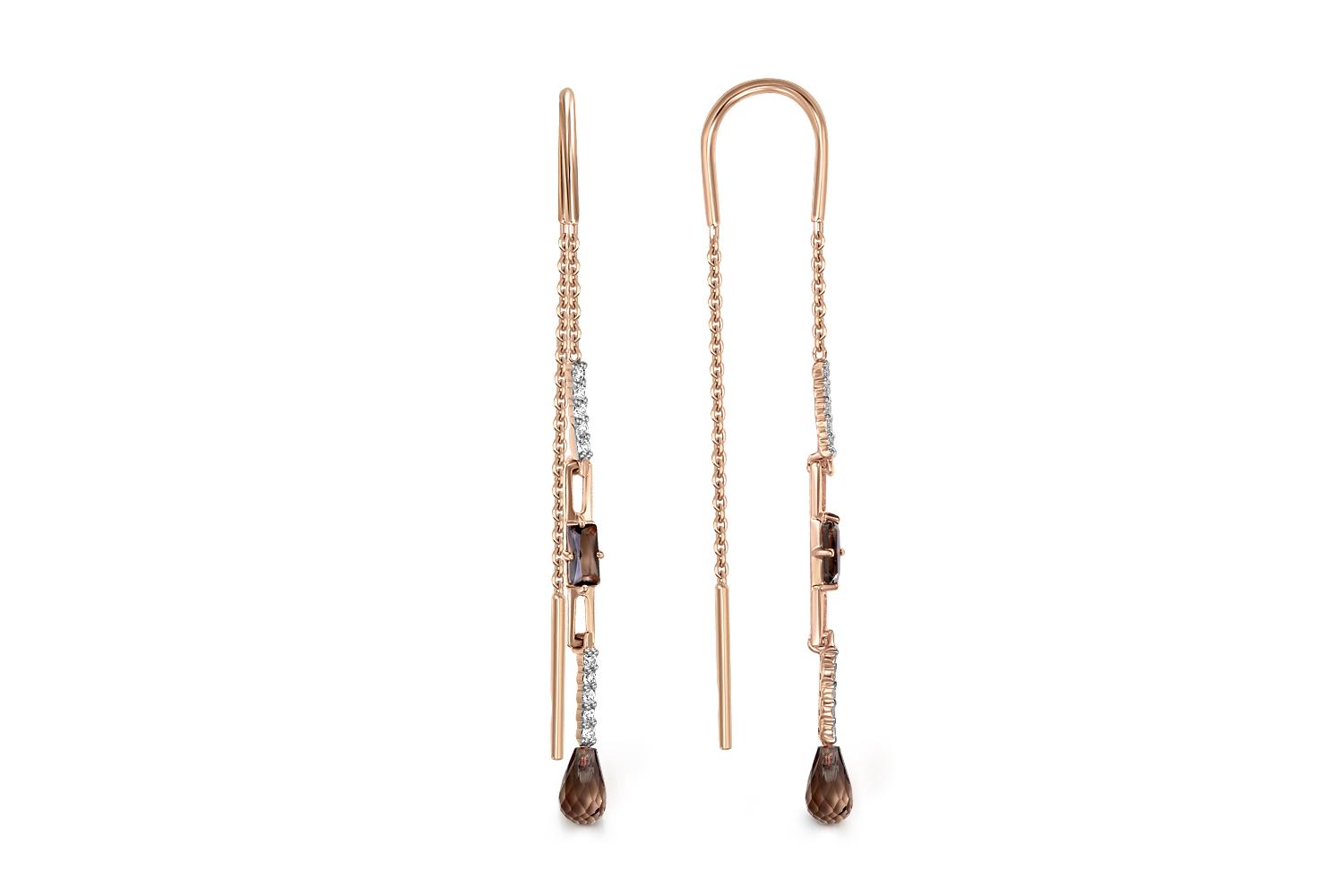 Эти женские серьги протяжки из золота 585 пробы с раухтопазами – идеальное украшение для создания утонченного образа. Их элегантные цепочки подчеркивают изящество длинных висячих аксессуаров, которые прекрасно подойдут для любого повода: будь то юбилей, день рождения, 8 марта или Новый год. Они станут прекрасным подарком любимой женщине – жене, сестре, племяннице, крестнице или внучке.