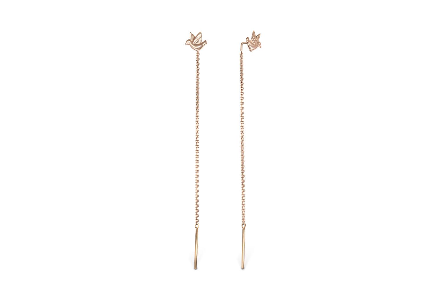 Мастера компании NEWGOLD, приложив всё свое мастерство и искусство, создали для Вас на нашем собственном производстве Серьги-продёвки Птицы из красного золота без вставок.