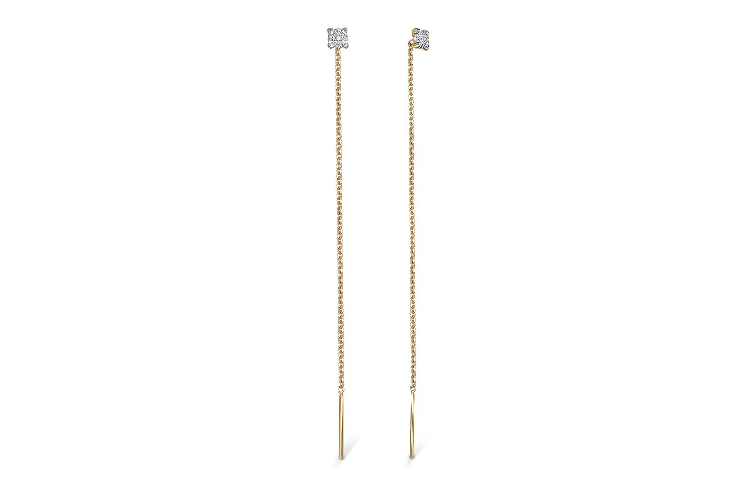 Мастера компании NEWGOLD, приложив всё свое мастерство и искусство, создали для Вас на нашем собственном производстве Серьги-продёвки из жёлтого золота с 2 бриллиантами.