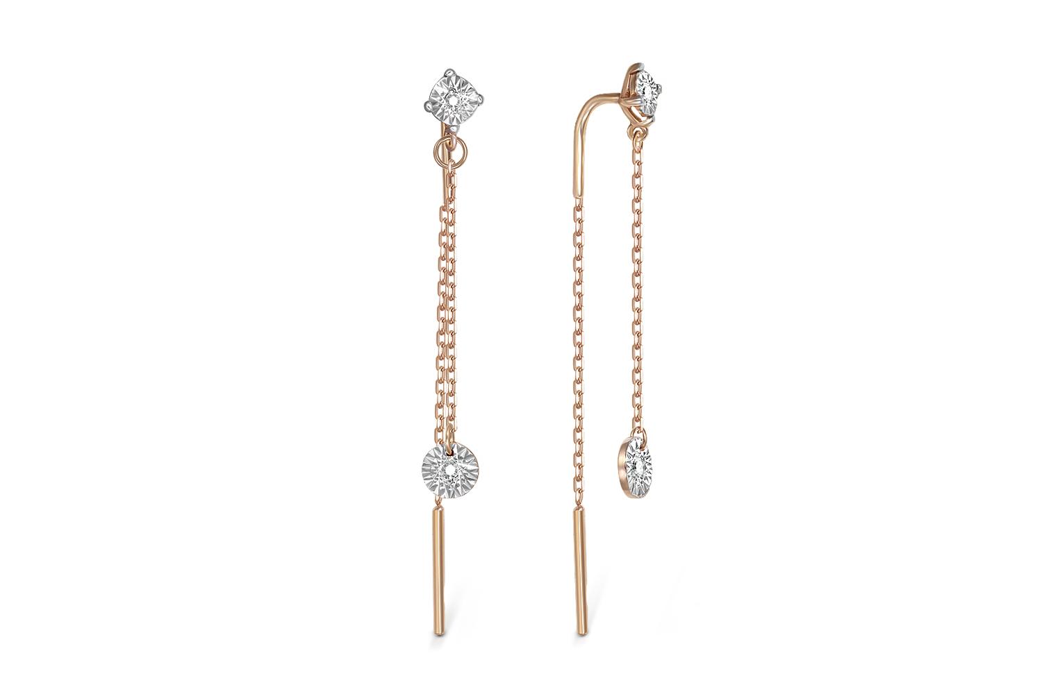 Закажите Серьги-продёвки из красного золота с 4 бриллиантами с получением в Москве через курьерскую службу доставки напрямую с нашего производственного склада завода NEWGOLD!