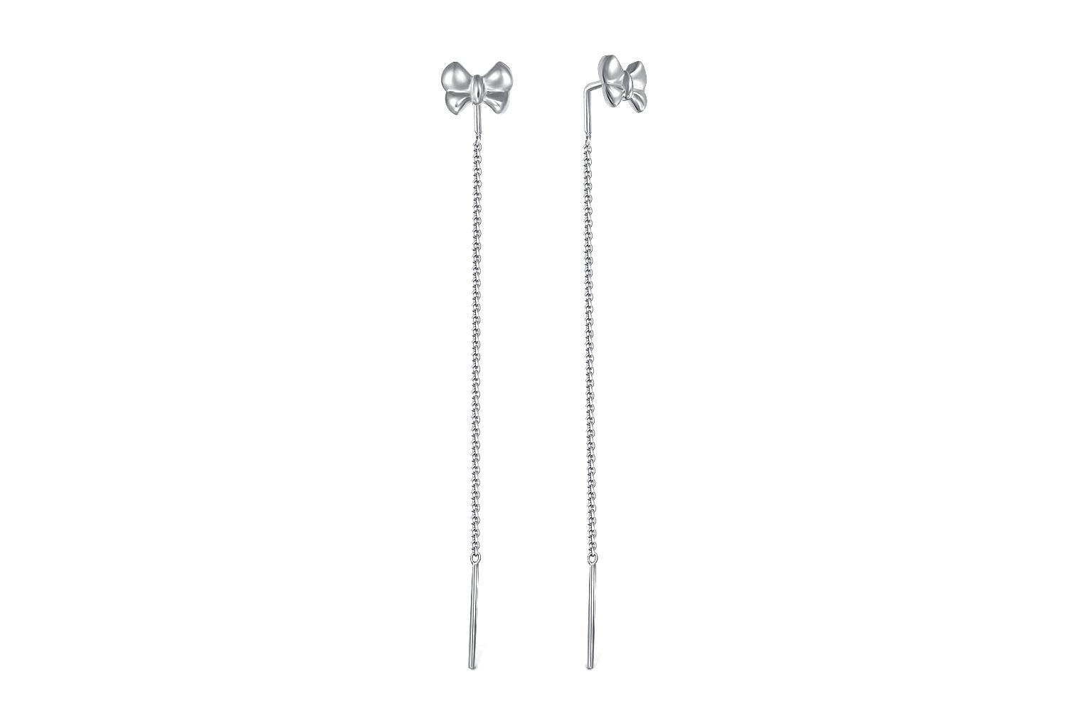 Мастера компании NEWGOLD, приложив всё свое мастерство и искусство, создали для Вас на нашем собственном производстве Серьги-продёвки Бантики из белого золота без вставок.