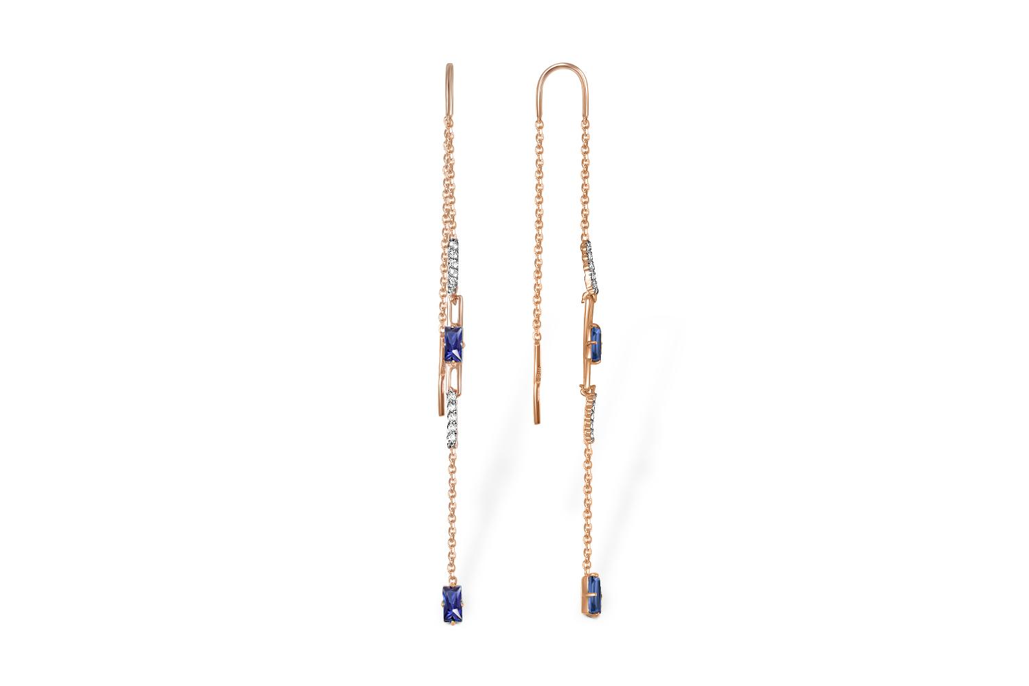 Мастера компании NEWGOLD, приложив всё свое мастерство и искусство, создали для Вас на нашем собственном производстве Серьги-продёвки из красного золота с 4 корундами и 20 бриллиантами.