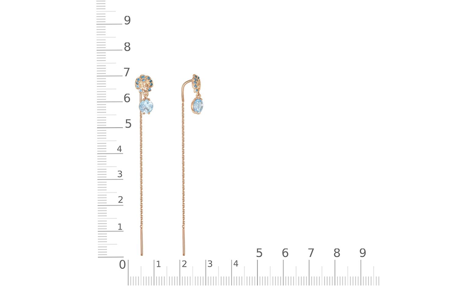 Мастера компании NEWGOLD, приложив всё свое мастерство и искусство, создали для Вас на нашем собственном производстве Серьги-продёвки из красного золота с 2 топазами sky и 20 топазами лондон.