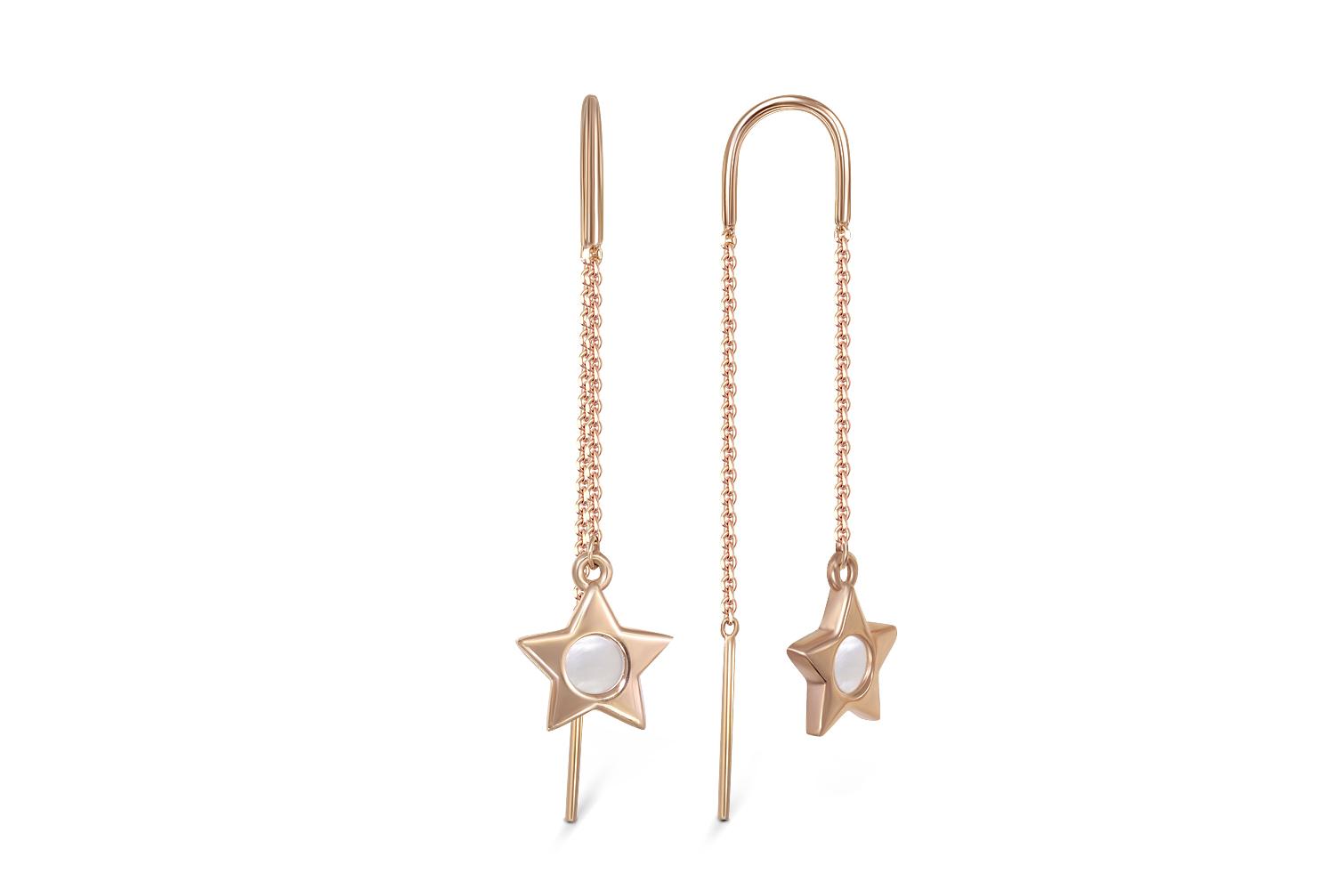 Мастера компании NEWGOLD, приложив всё свое мастерство и искусство, создали для Вас на нашем собственном производстве Серьги-продёвки Звезды из красного золота с перламутром.