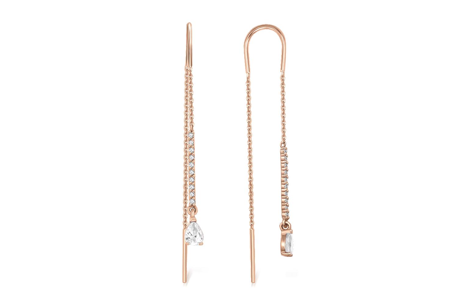 Закажите Серьги-продёвки Дорожки из красного золота с 22 кристаллами swarovski с получением в Москве через курьерскую службу доставки напрямую с нашего производственного склада завода NEWGOLD!