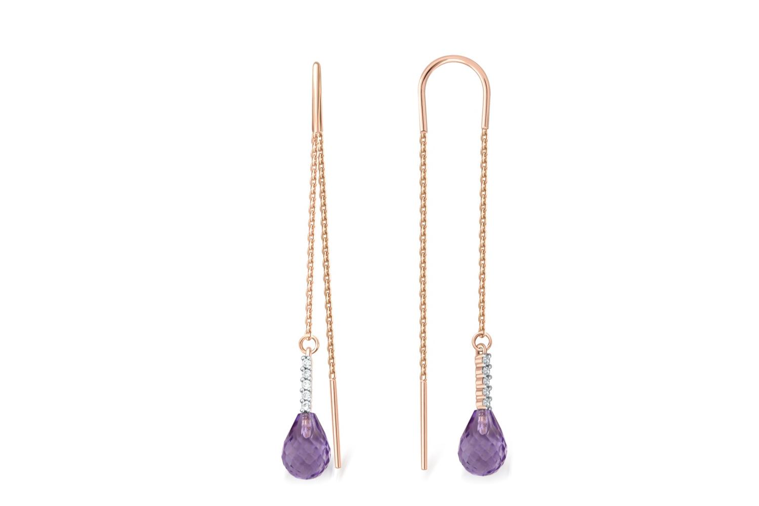 Мастера компании NEWGOLD, приложив всё свое мастерство и искусство, создали для Вас на нашем собственном производстве Серьги-продёвки из красного золота с 2 аметистами и 10 фианитами.