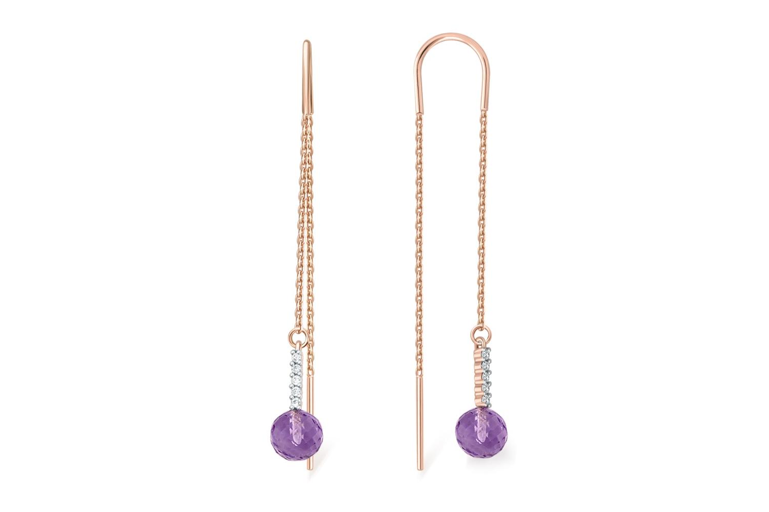 Закажите Серьги-продёвки из красного золота с 2 аметистами и 10 фианитами с получением в Москве через курьерскую службу доставки напрямую с нашего производственного склада завода NEWGOLD!