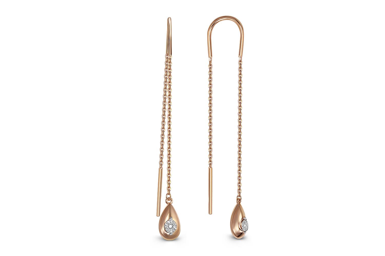 Закажите Серьги-продёвки из красного золота с 2 бриллиантами с получением в Москве через курьерскую службу доставки напрямую с нашего производственного склада завода NEWGOLD!