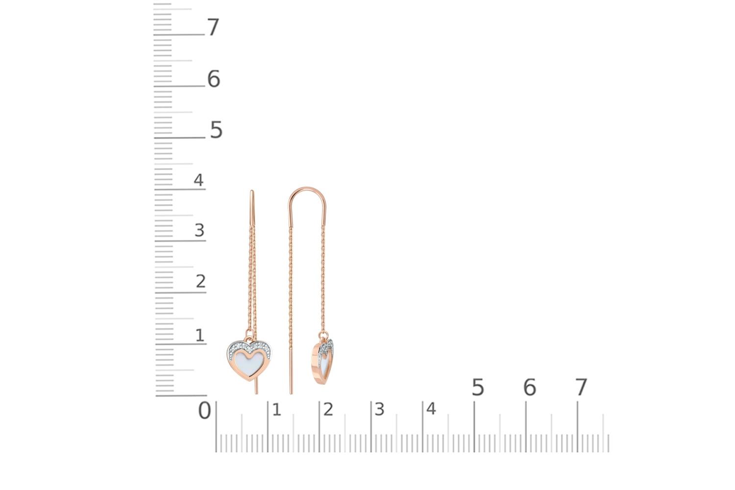 Мастера компании NEWGOLD, приложив всё свое мастерство и искусство, создали для Вас на нашем собственном производстве Серьги-продёвки Сердца из красного золота с перламутром и 14 фианитами.