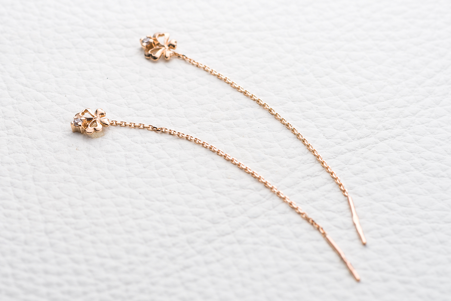 Мастера компании NEWGOLD, приложив всё свое мастерство и искусство, создали для Вас на нашем собственном производстве Серьги-продёвки Бантики из красного золота с 2 фианитами.