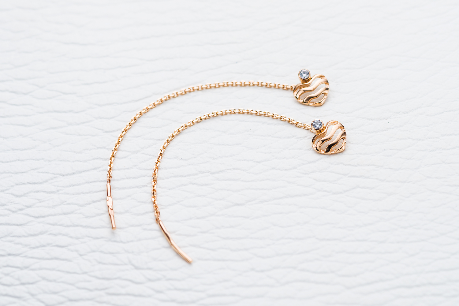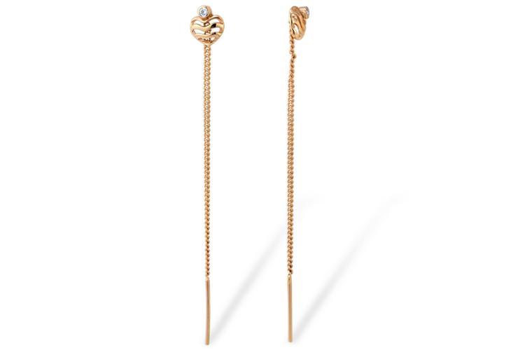 Мастера компании NEWGOLD, приложив всё свое мастерство и искусство, создали для Вас на нашем собственном производстве Серьги-продёвки Сердца из красного золота с 2 фианитами.