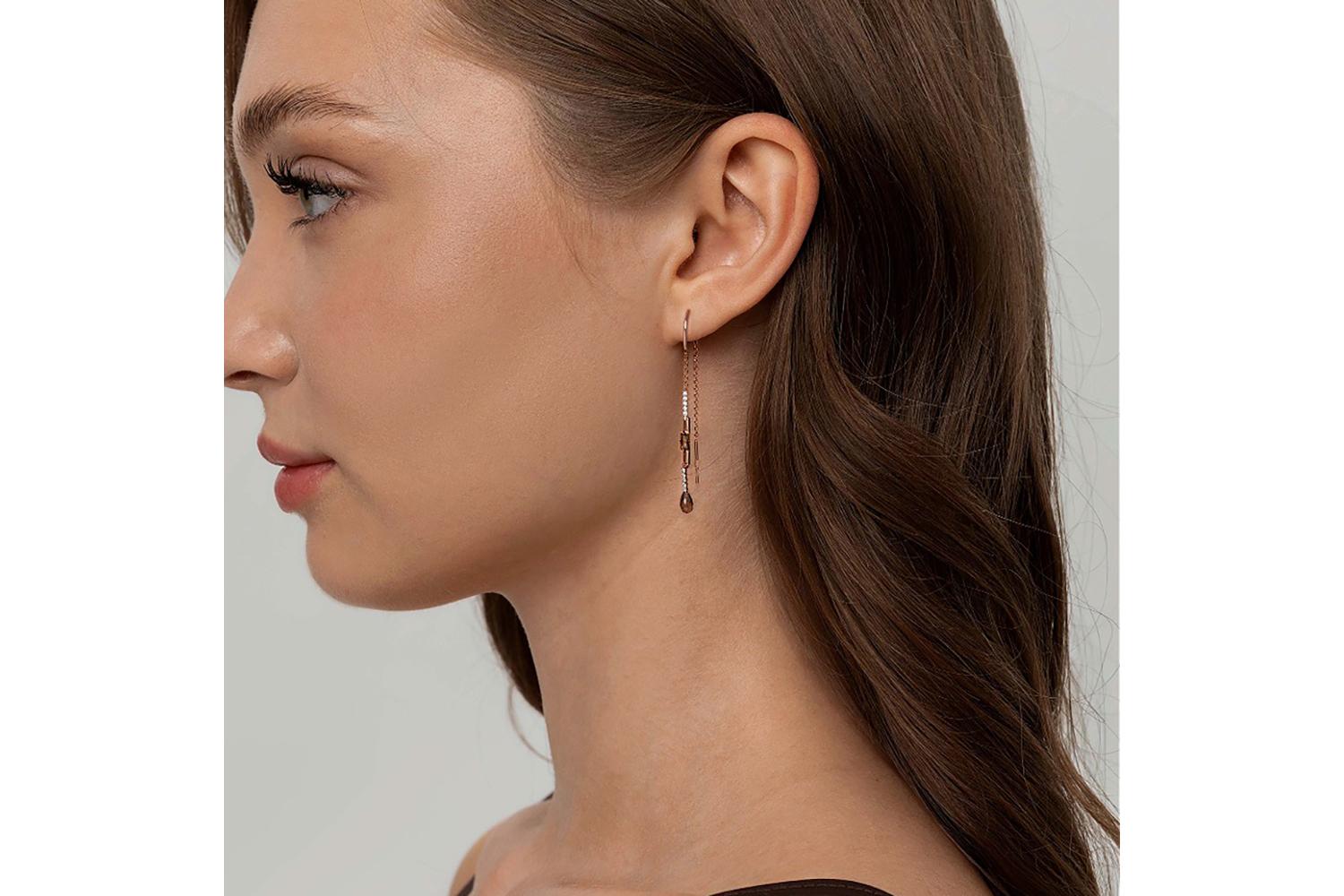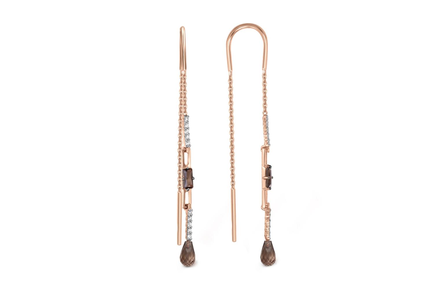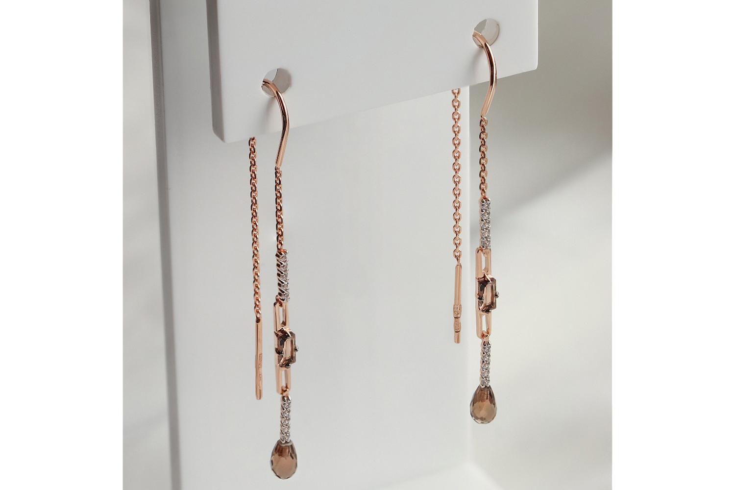 Закажите Серьги-продёвки из красного золота с 4 раухтопазами и 20 фианитами с получением в Москве через курьерскую службу доставки напрямую с нашего производственного склада завода NEWGOLD!