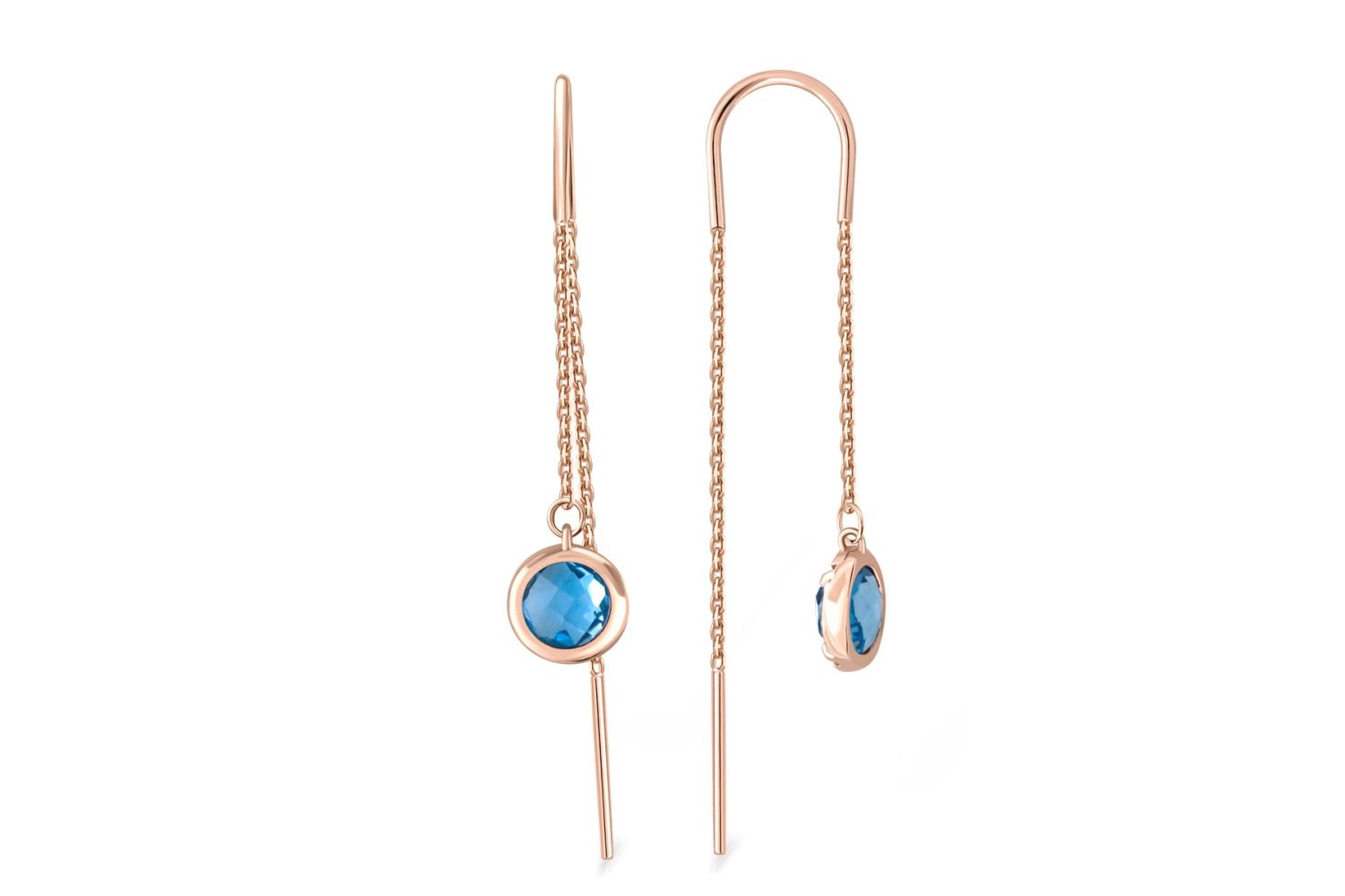 Закажите Серьги-продёвки из красного золота с 2 топазами swiss с получением в Москве через курьерскую службу доставки напрямую с нашего производственного склада завода NEWGOLD!