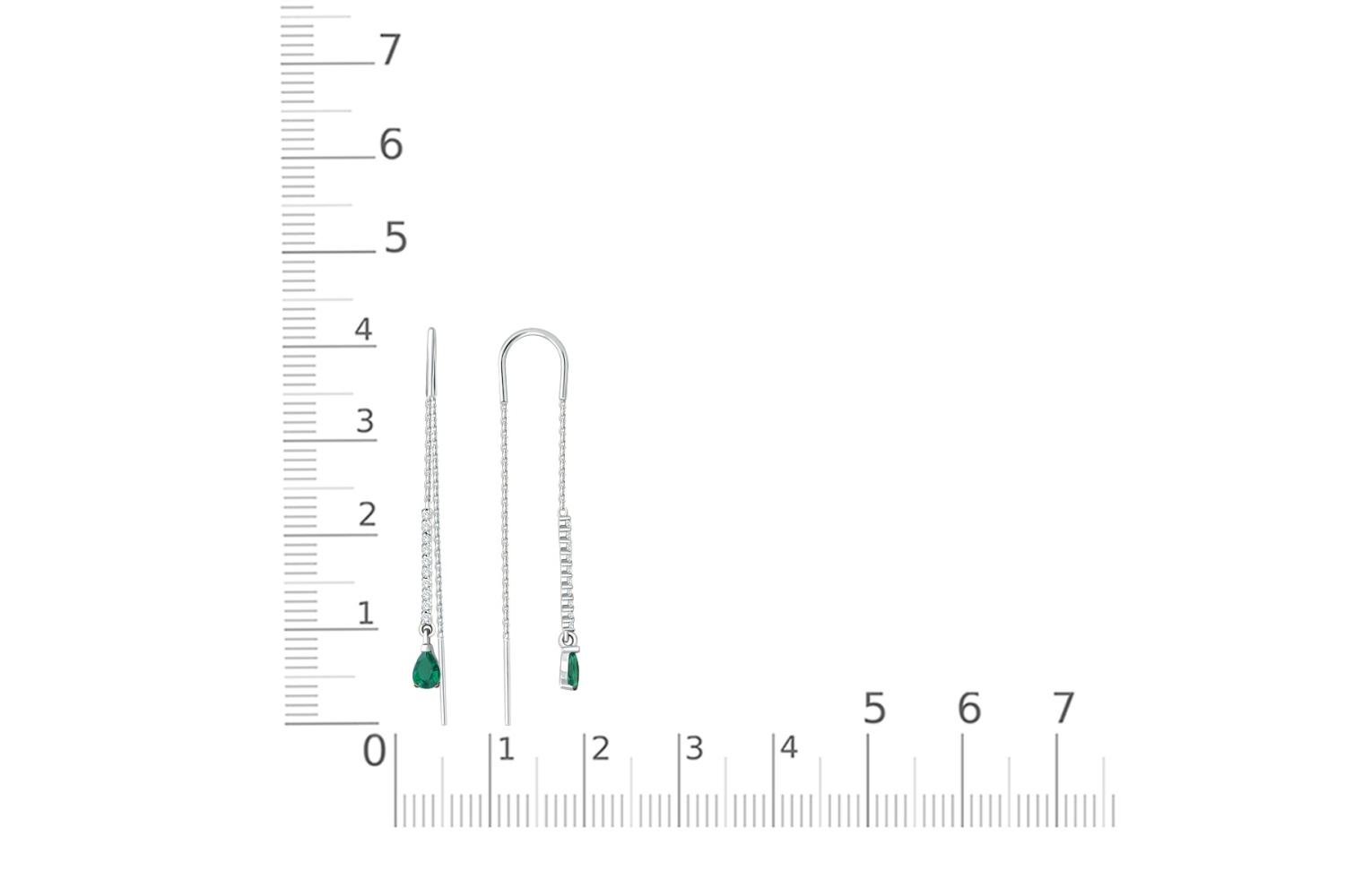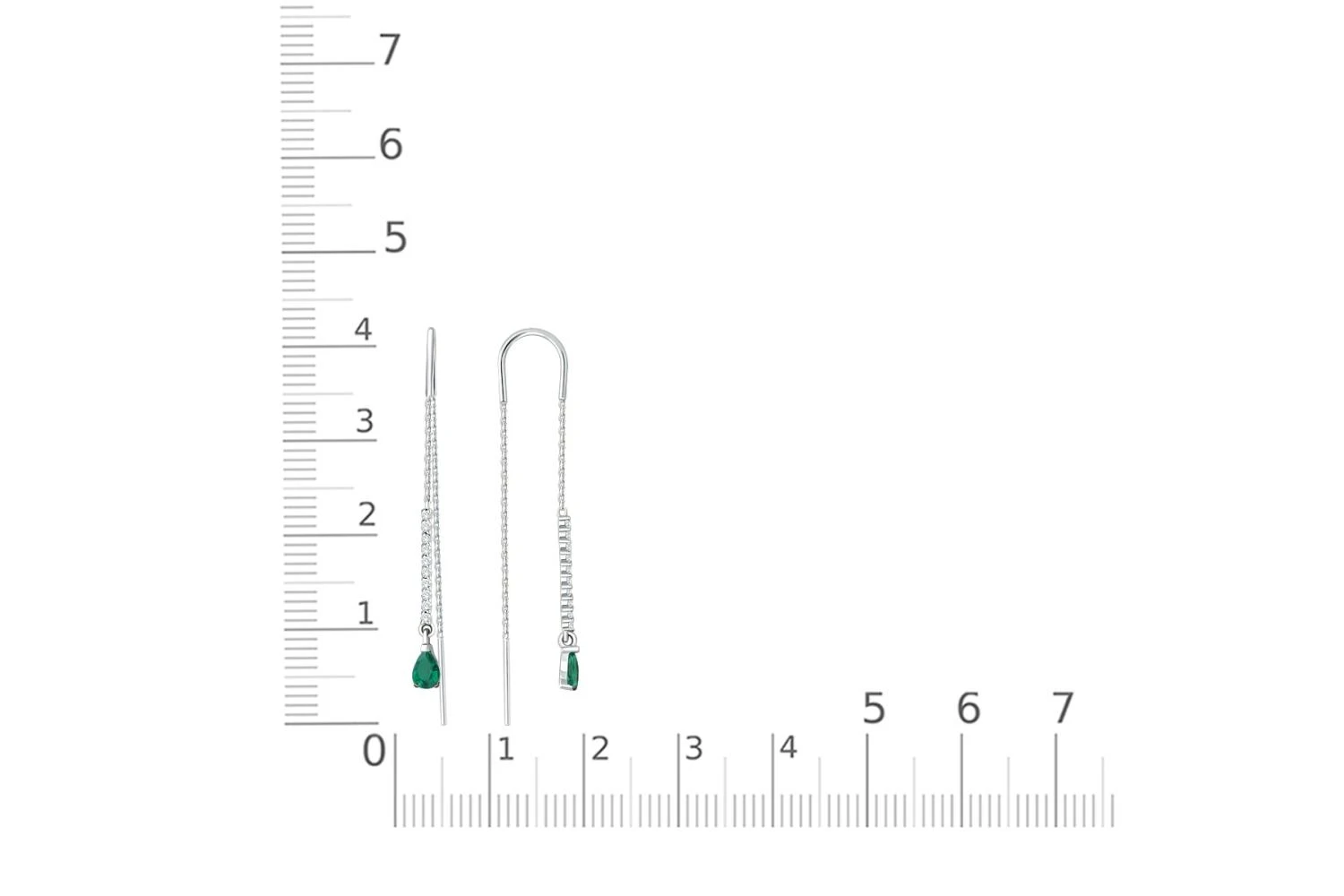 Мастера компании NEWGOLD, приложив всё свое мастерство и искусство, создали для Вас на нашем собственном производстве Серьги-продёвки Дорожки из белого золота с 2 изумрудами и 20 фианитами.