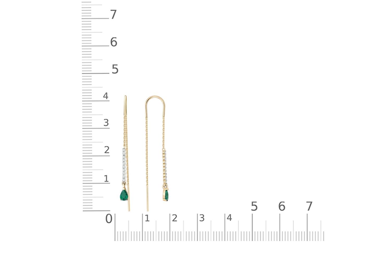 Мастера компании NEWGOLD, приложив всё свое мастерство и искусство, создали для Вас на нашем собственном производстве Серьги-продёвки Дорожки из жёлтого золота с 2 изумрудами и 20 фианитами.