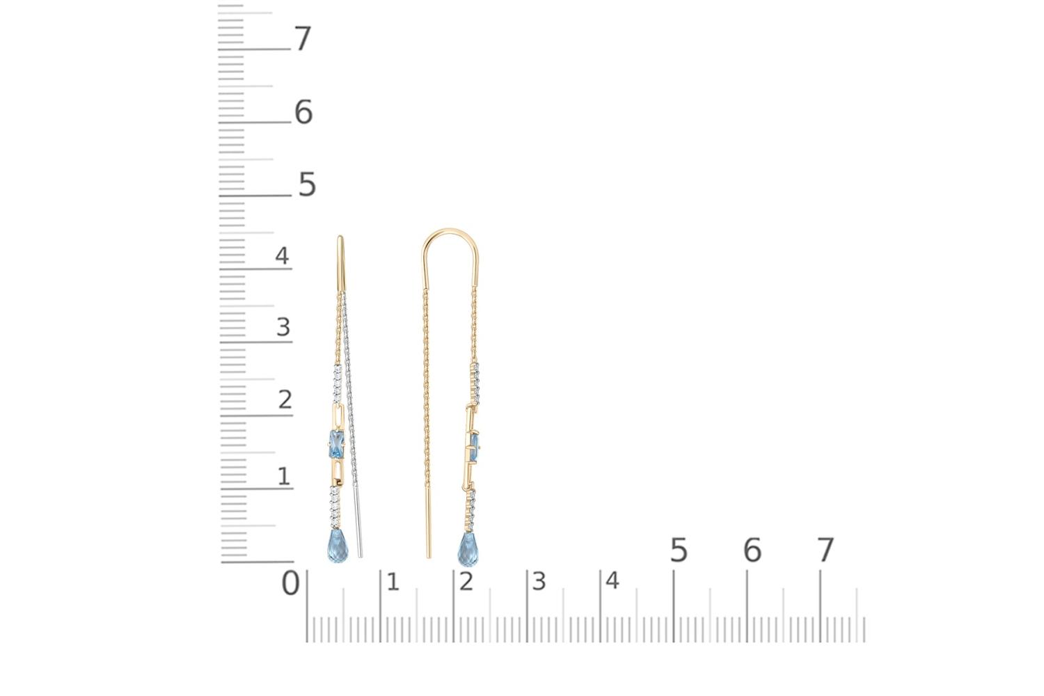 Мастера компании NEWGOLD, приложив всё свое мастерство и искусство, создали для Вас на нашем собственном производстве Серьги-продёвки из жёлтого золота с 4 топазами sky и 20 фианитами.