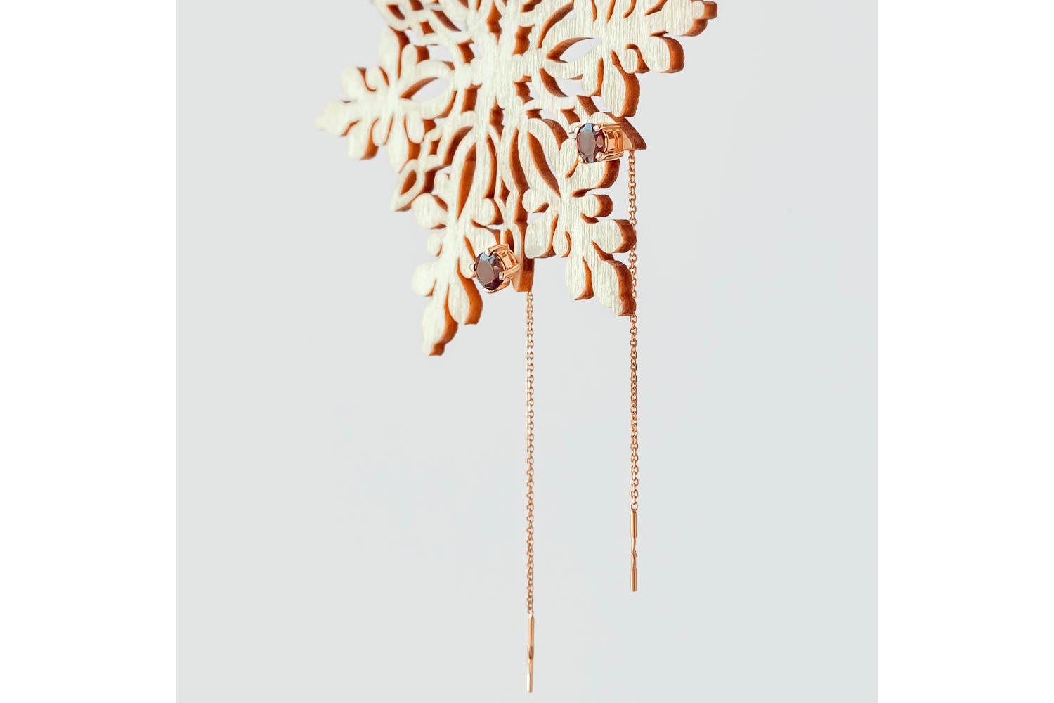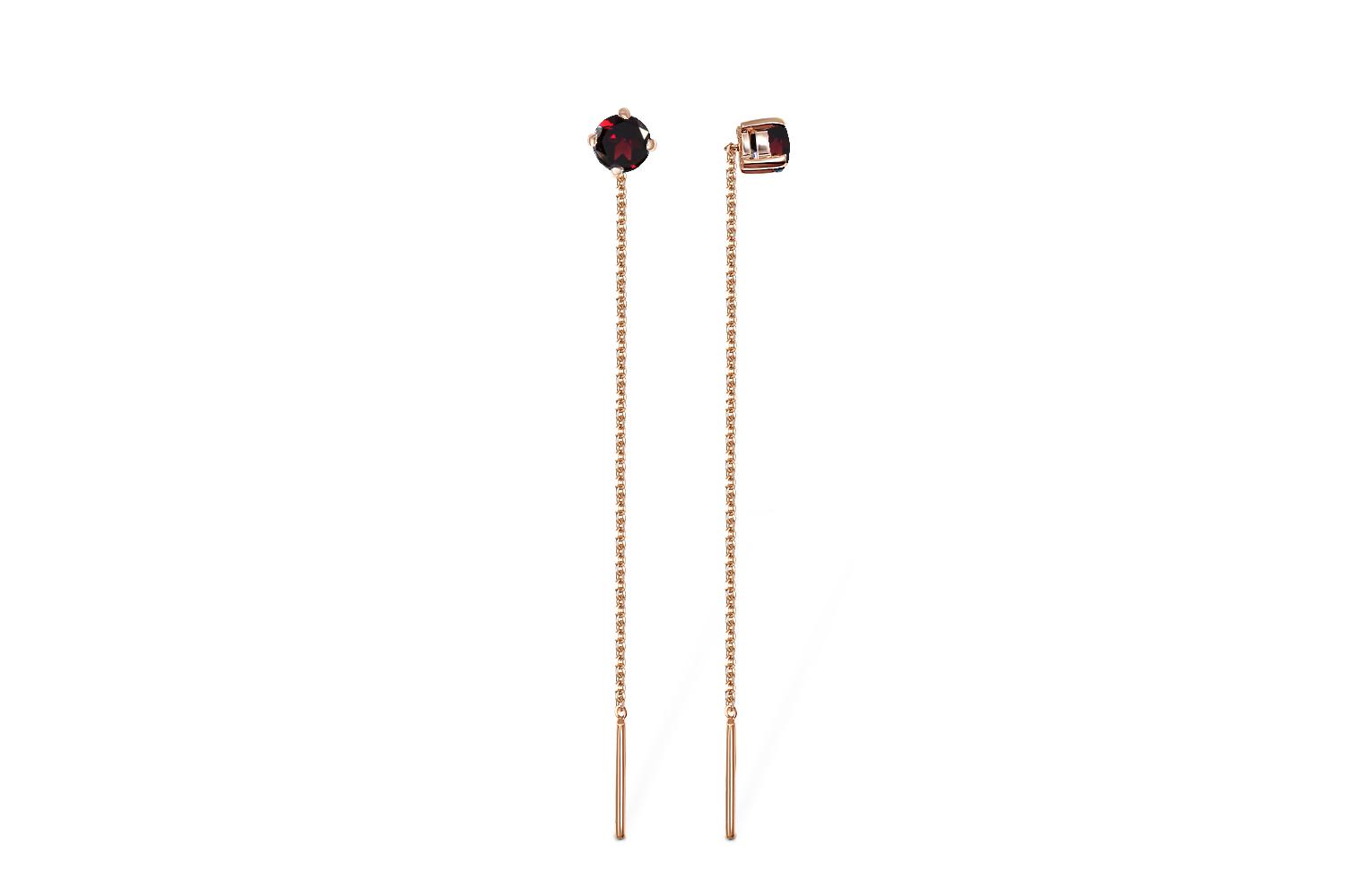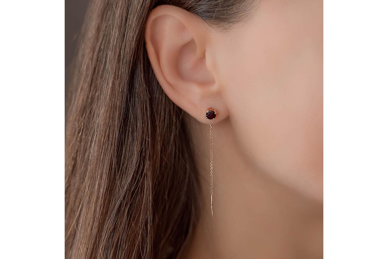Мастера компании NEWGOLD, приложив всё свое мастерство и искусство, создали для Вас на нашем собственном производстве Серьги-продёвки из красного золота с 2 гранатами.