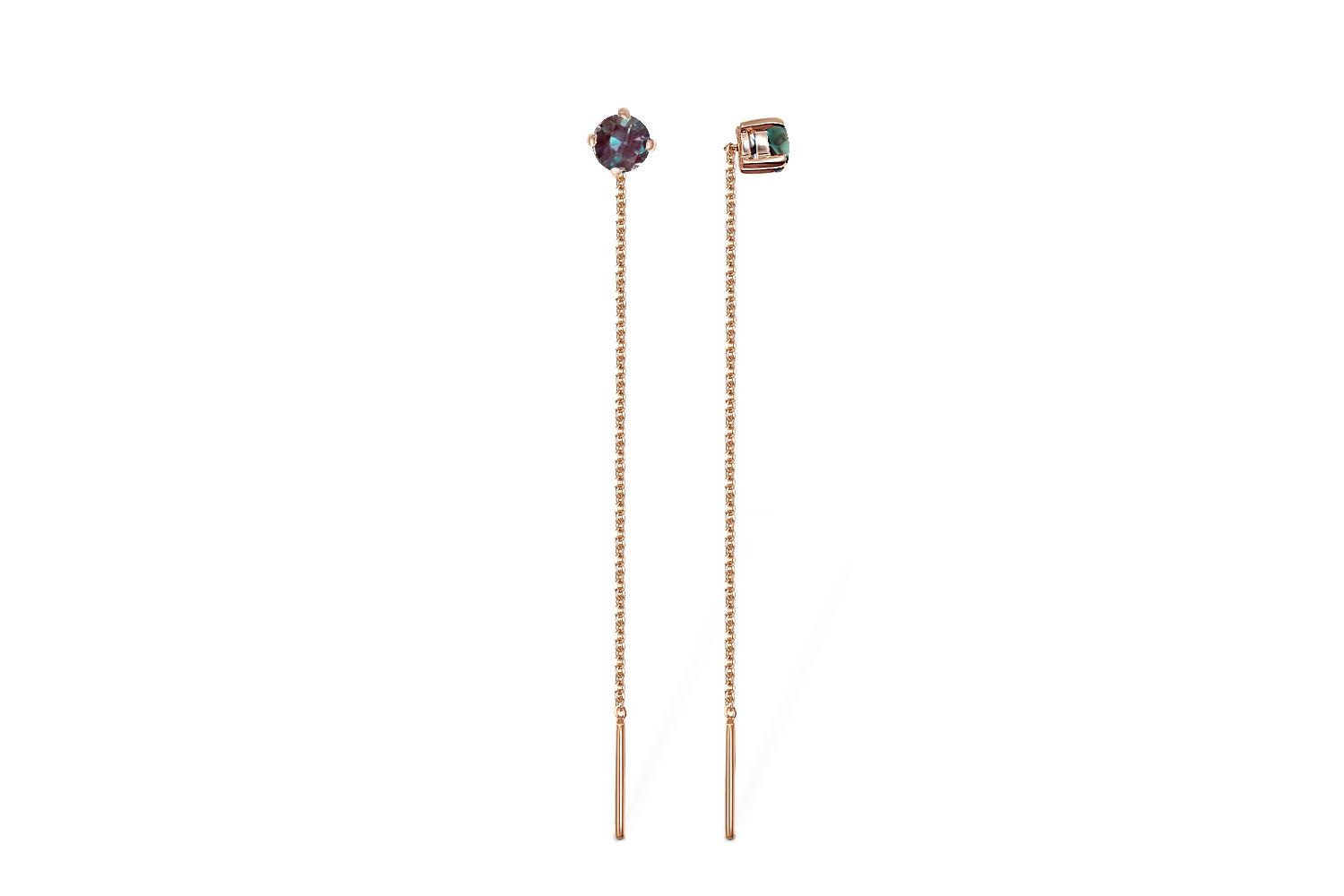 Мастера компании NEWGOLD, приложив всё свое мастерство и искусство, создали для Вас на нашем собственном производстве Серьги-продёвки из красного золота с 2 александритами.