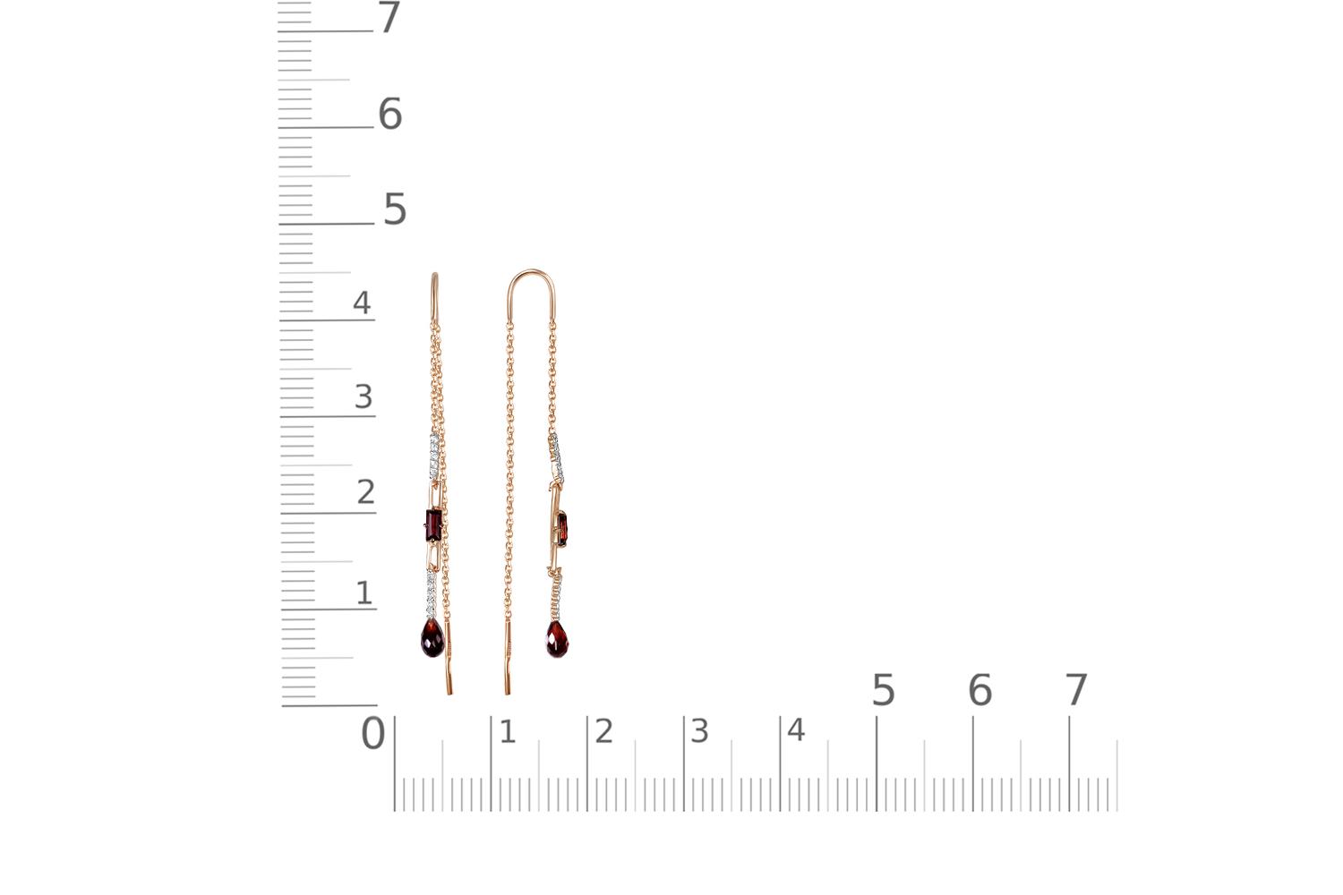 Мастера компании NEWGOLD, приложив всё свое мастерство и искусство, создали для Вас на нашем собственном производстве Серьги-продёвки из красного золота с 4 гранатами и 20 фианитами.