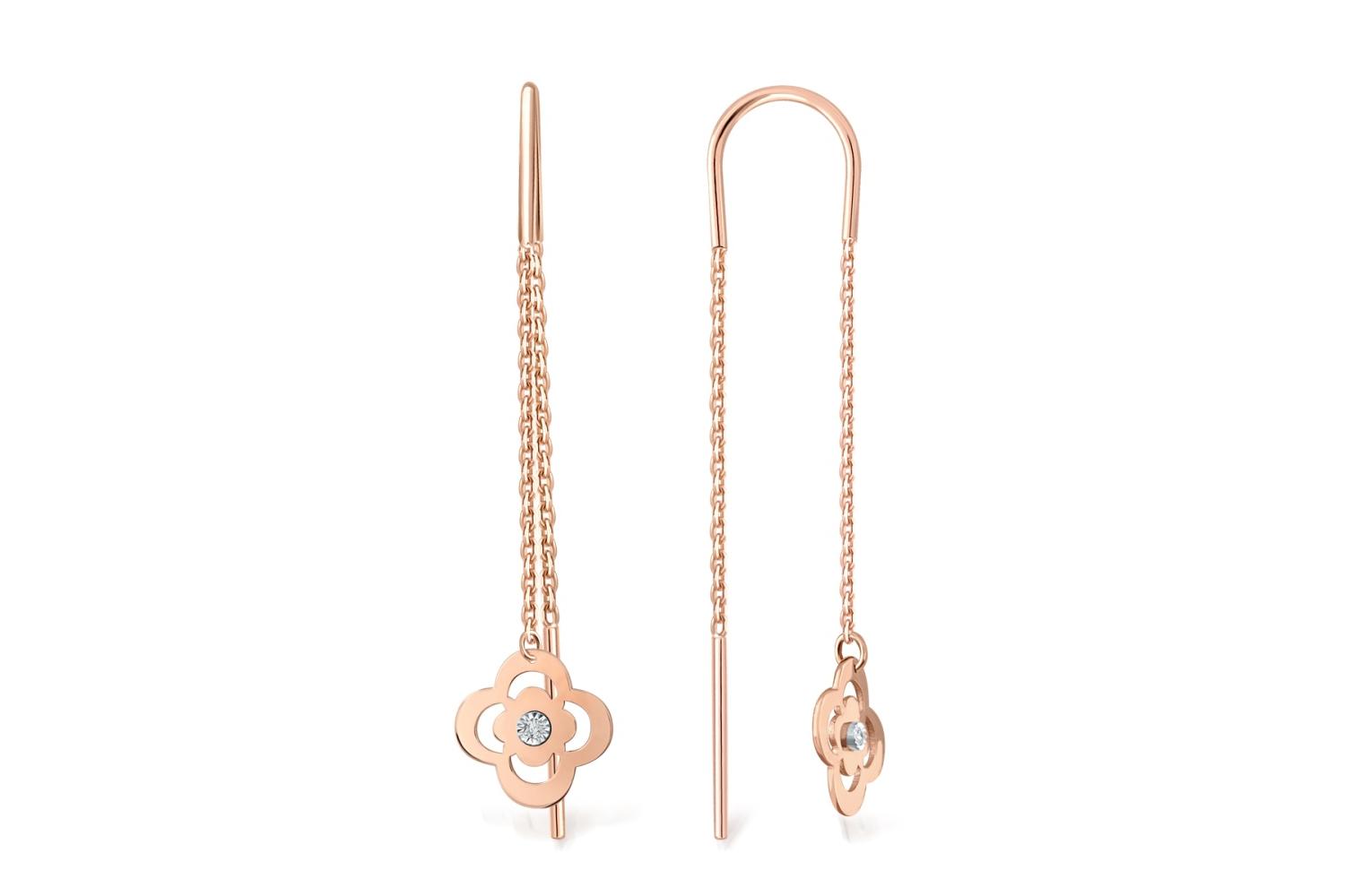 Мастера компании NEWGOLD, приложив всё свое мастерство и искусство, создали для Вас на нашем собственном производстве Серьги-продёвки Клевер из красного золота с 2 бриллиантами.