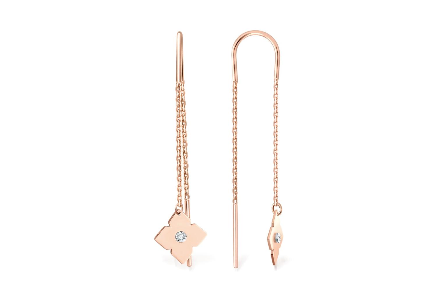 Мастера компании NEWGOLD, приложив всё свое мастерство и искусство, создали для Вас на нашем собственном производстве Серьги-продёвки из красного золота с 2 бриллиантами.