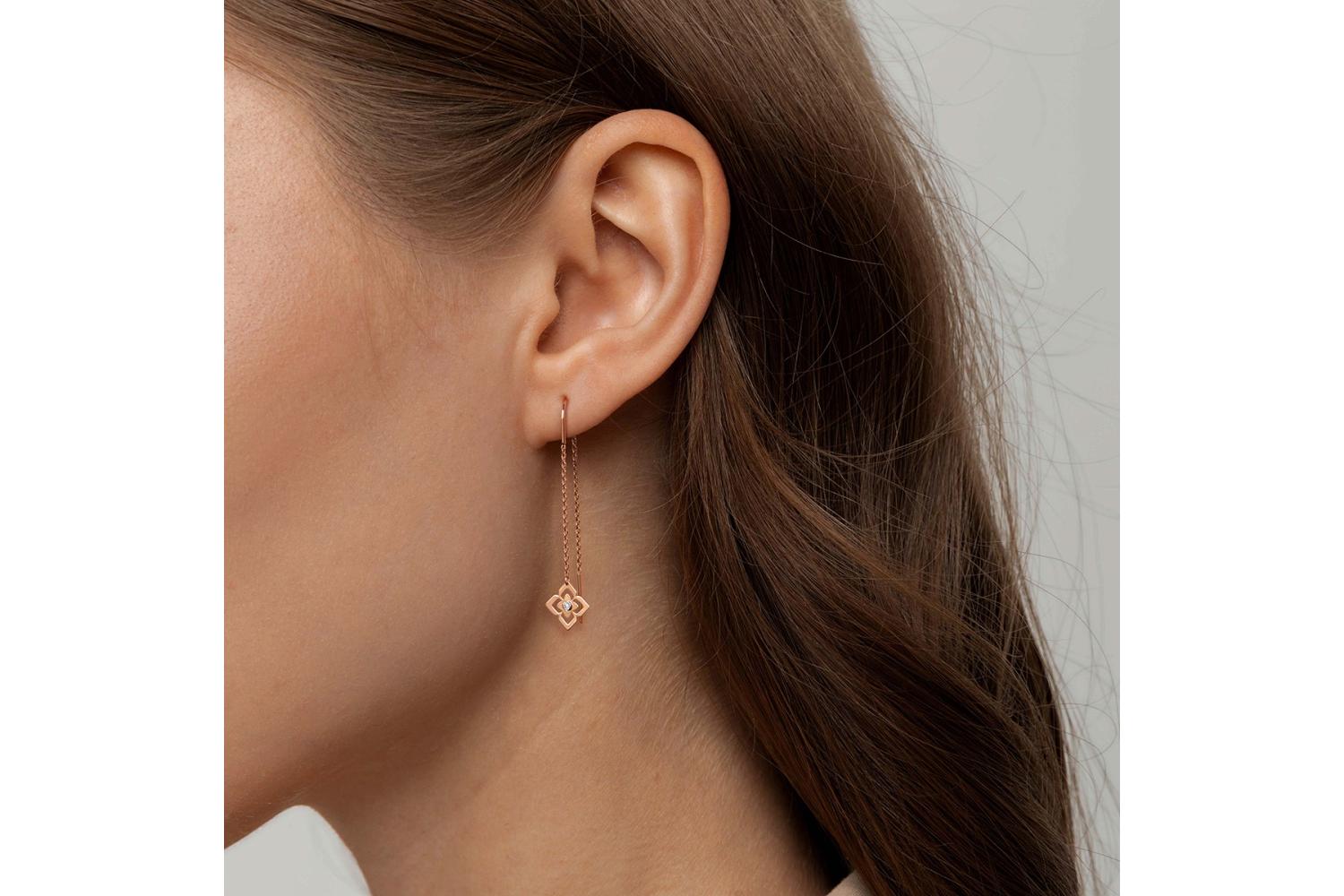 Мастера компании NEWGOLD, приложив всё свое мастерство и искусство, создали для Вас на нашем собственном производстве Серьги-продёвки из красного золота с 2 бриллиантами.