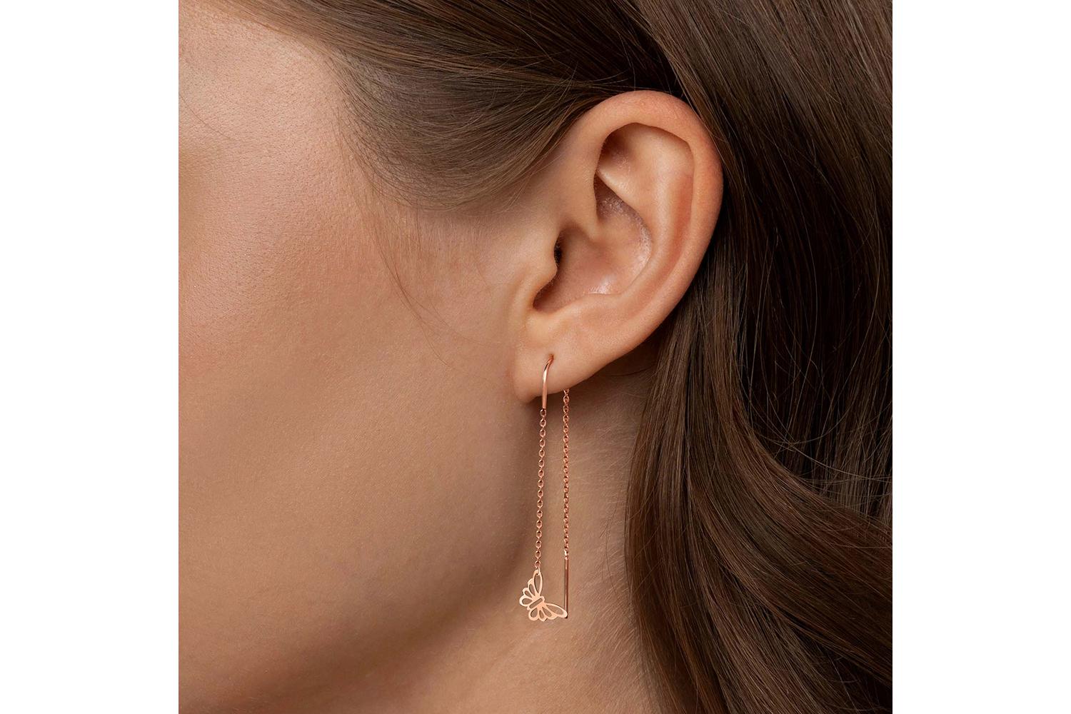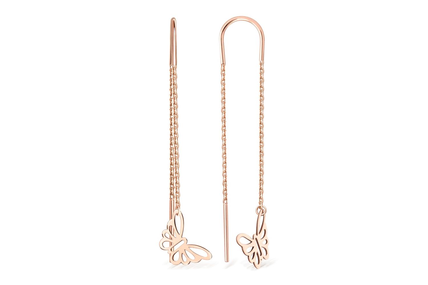 Мастера компании NEWGOLD, приложив всё свое мастерство и искусство, создали для Вас на нашем собственном производстве Серьги-продёвки Бабочки из красного золота без вставок.