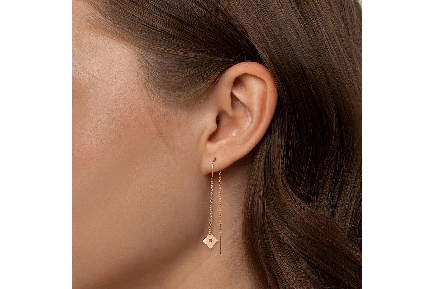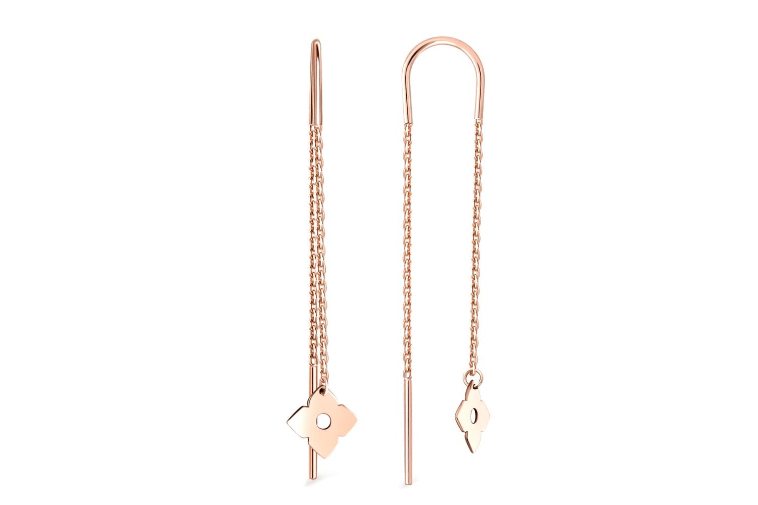 Мастера компании NEWGOLD, приложив всё свое мастерство и искусство, создали для Вас на нашем собственном производстве Серьги-продёвки Клевер из красного золота без вставок.
