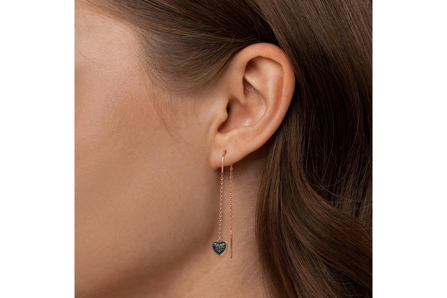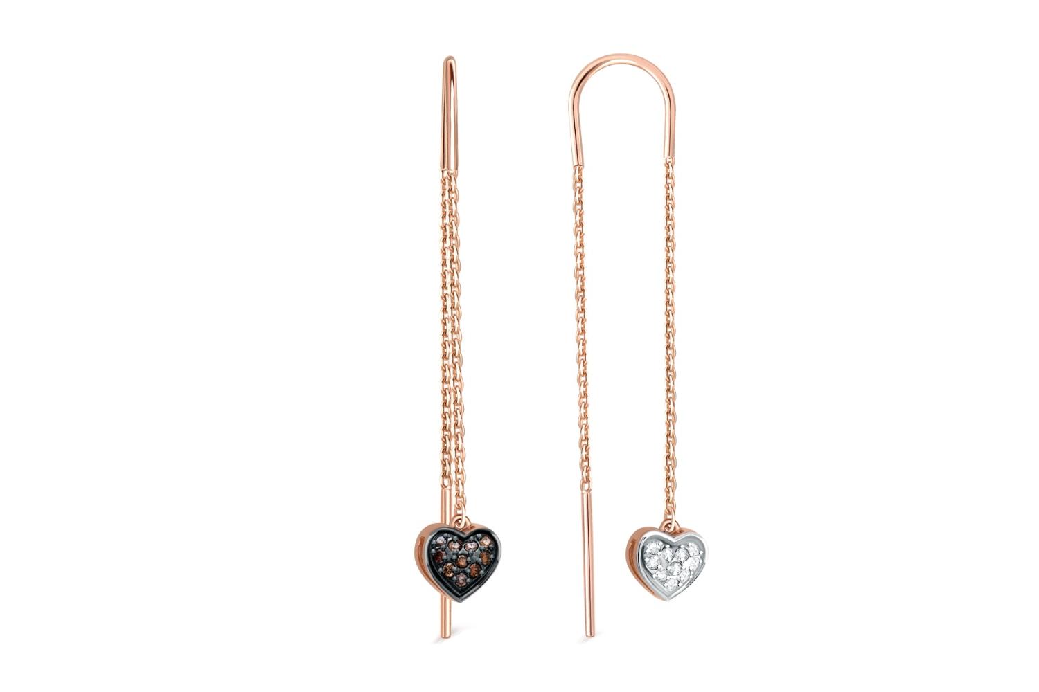Мастера компании NEWGOLD, приложив всё свое мастерство и искусство, создали для Вас на нашем собственном производстве Серьги-продёвки Сердца из красного золота с 20 фианитами.