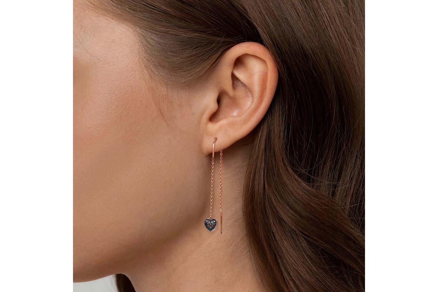 Мастера компании NEWGOLD, приложив всё свое мастерство и искусство, создали для Вас на нашем собственном производстве Серьги-продёвки Сердца из красного золота с 20 фианитами.